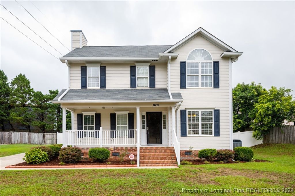 Welcome to this beautiful Southern home, featuring charming front and side porches, complete with a cozy swing. This spacious residence offers 4 bedrooms, 2.5 baths, and a large living area, perfect for family and friends gatherings. The formal dining room, which can also serve as an office or playroom, adds versatility to the layout. The eat-in kitchen boasts granite countertops, SS appliances, a pantry and a new micro-hood. Enjoy the new two-inch blinds just installed on the first floor and the newer roof installed in 2020. The outdoor space is equally impressive, with a deck, patio and tree-house playset, ideal for entertaining and family fun. Additional storage is provided by a convenient shed.