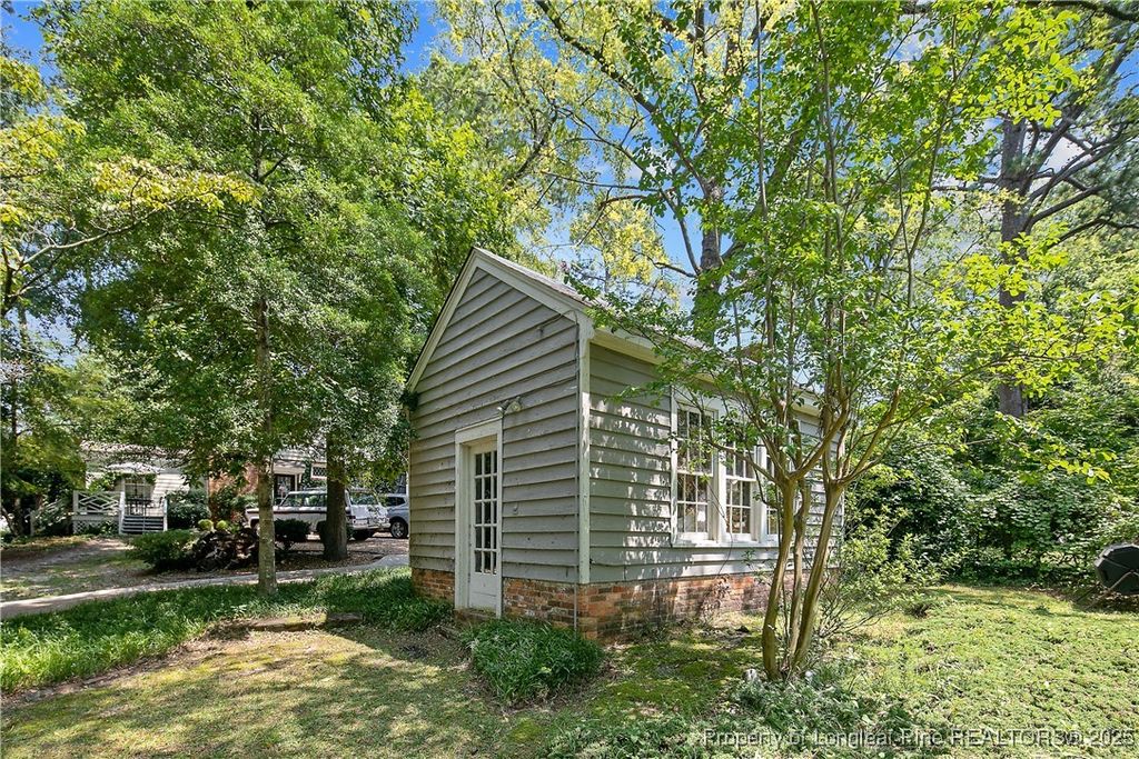 Located near the prestigious Highland Country Club, this enchanting New England-style cottage blends timeless character with inviting warmth. One of its most captivating features is the heart pine flooring that flows throughout much of the home, adding a touch of authenticity and charm. Built to accommodate a growing family, this spacious one story residence offers 4 bedrooms and 3 1/2 baths, along with beautifully designed living spaces. The formal living room exudes elegance with a fireplace and built-in bookcases-perfect for displaying treasured books or collectibles-while the formal dining room sets the stage for memorable gatherings. The cozy family room is a true retreat, featuring a beamed ceiling, fireplace, built-in shelves, and a classic wet bar. A French door opens to a delightful screened porch overlooking a serene courtyard with a fountain, ideal for relaxing or entertaining. The primary suite is a private haven, complete with a vaulted wood ceiling, walk-in closet, and en suite bath featuring a separate tub and shower. The guest wing offers three additional bedrooms, each with its own charm: one with an en suite bath and balcony overlooking the front lawn, another with built-in bunk beds, bookcases, and a bay window; and a large third bedroom sharing a Jack & Jill bath. With rich wood moldings, custom details from the 1940s, and expansive grounds that include a quaint outdoor cabin with fireplace-a favorite spot for past oyster roasts-this home is truly one-of-a-kind. Classic, comfortable, and full of history, it's a rare find in the Forest Lake area.
