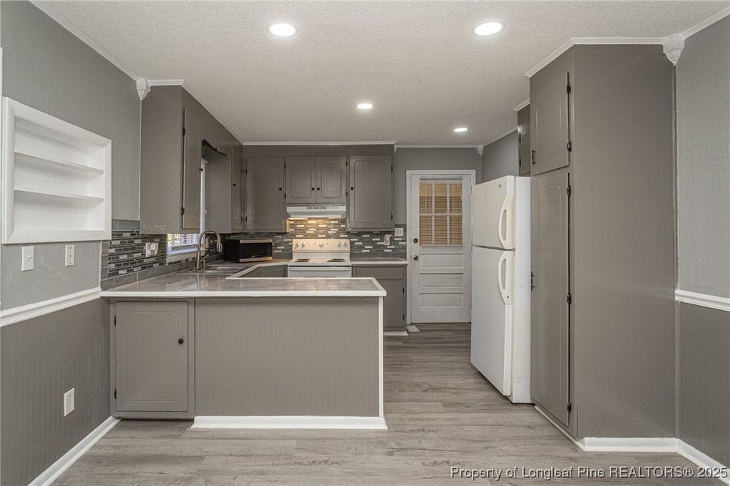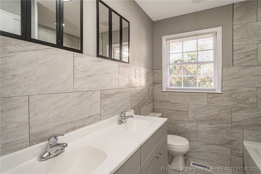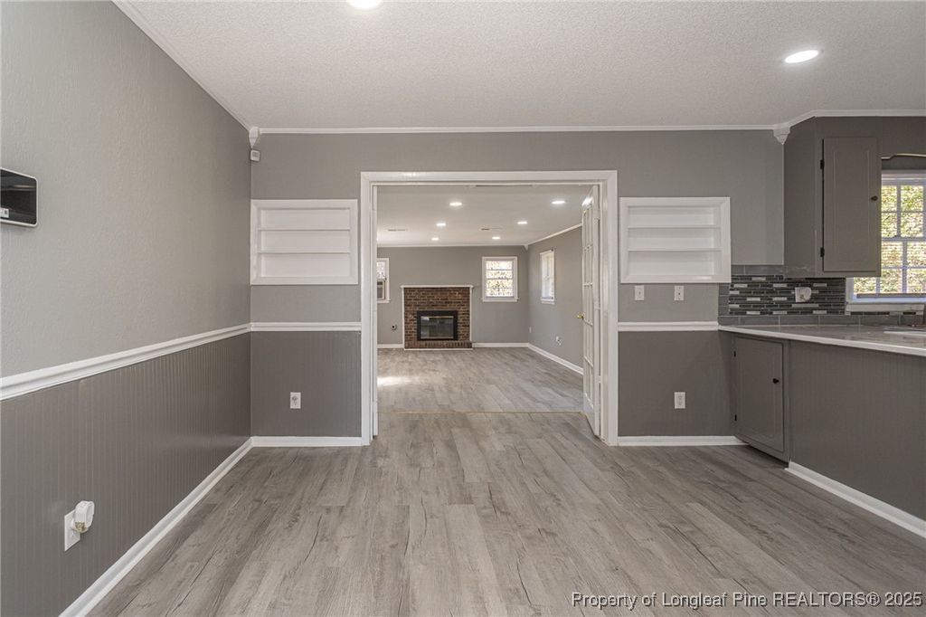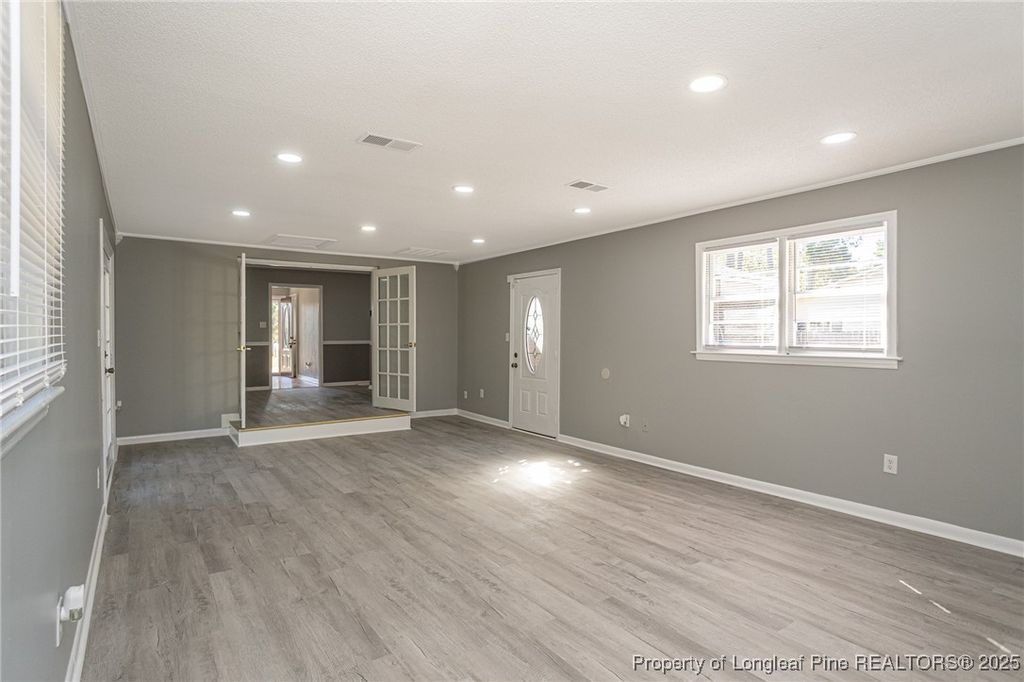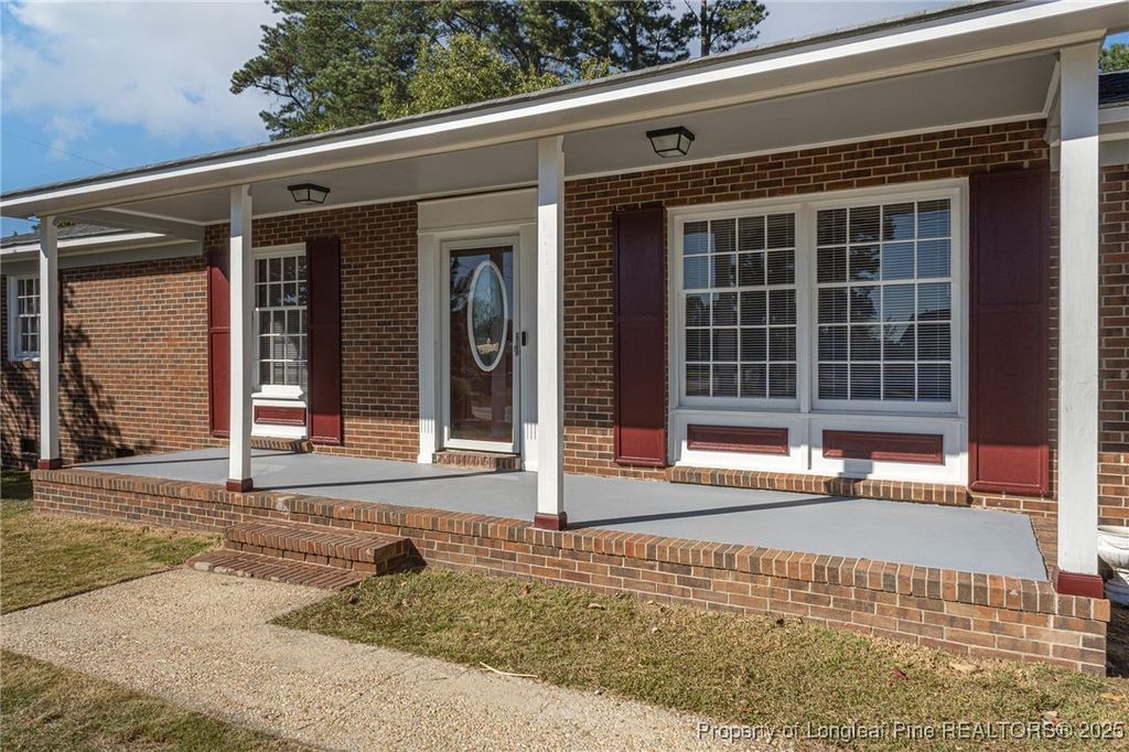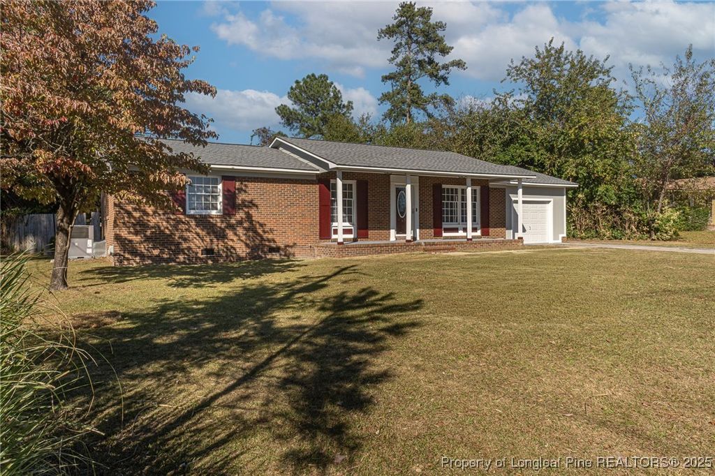 Updated brick ranch located less than 2 miles to Ft Bragg! This home features a spacious Living Room with hardwood floors, roomy Eat in Kitchen with Breakfast Bar with new dishwasher and vent hood. Tile backsplash. Huge Den with wood burning Fireplace! New interior and exterior paint. New LVP flooring in Kitchen and Den. Updated Bathrooms! New water heater. Roof new with ridge vent in 2025. New interior and exterior lights. New garage door. Pull down stairs for attic access, new Tub in Hall Bath and new tile in both baths! No carpet! Move in ready! 1 car garage, large yard located just minutes to shopping, restaurants, schools and Ft Bragg!