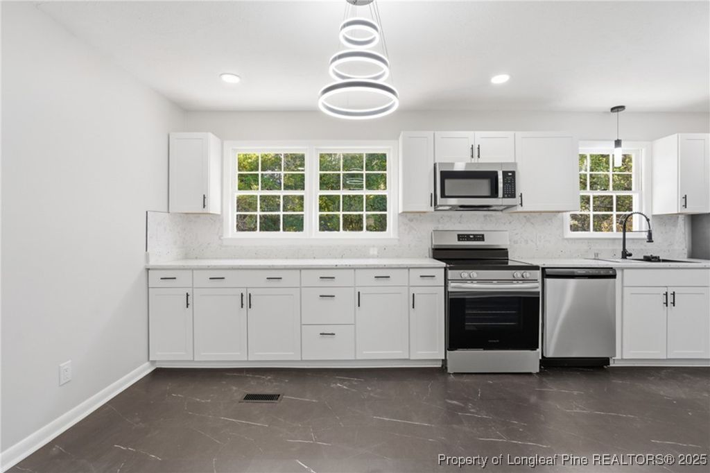 Beautifully renovated home located in the established Pleasant Valley neighborhood, sitting on almost an acre of land right in the city"”no HOA! This spacious 3-bedroom, 2-bath home has been thoughtfully updated throughout, offering a perfect blend of comfort and modern style. The interior features new cabinets, granite countertops, tile backsplash, stainless steel appliances, recessed lighting, new flooring, and fresh interior and exterior paint. New SS appliances.