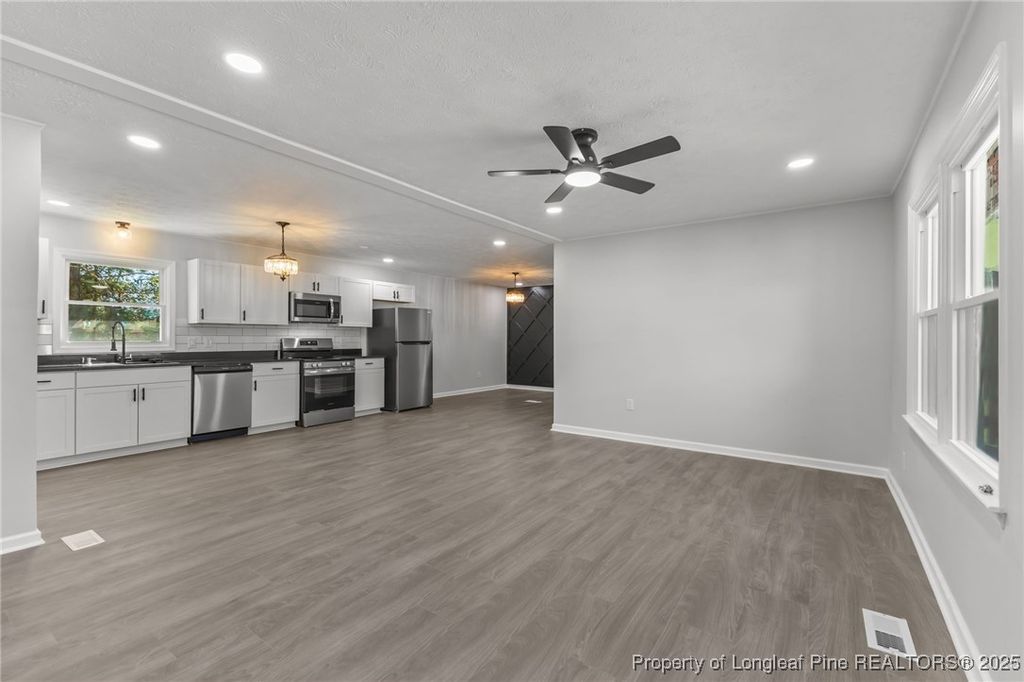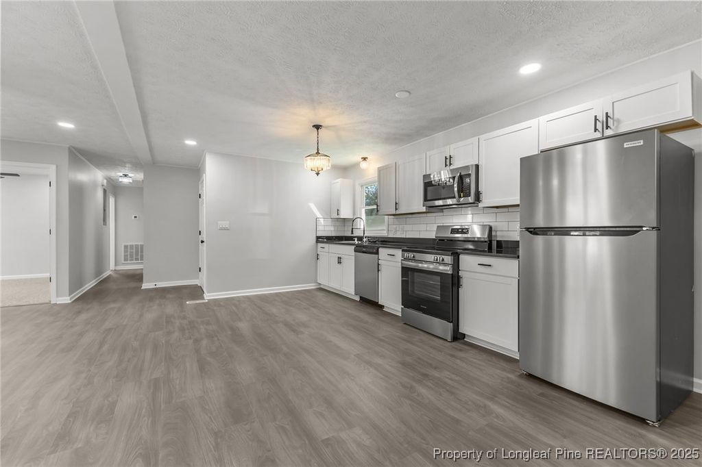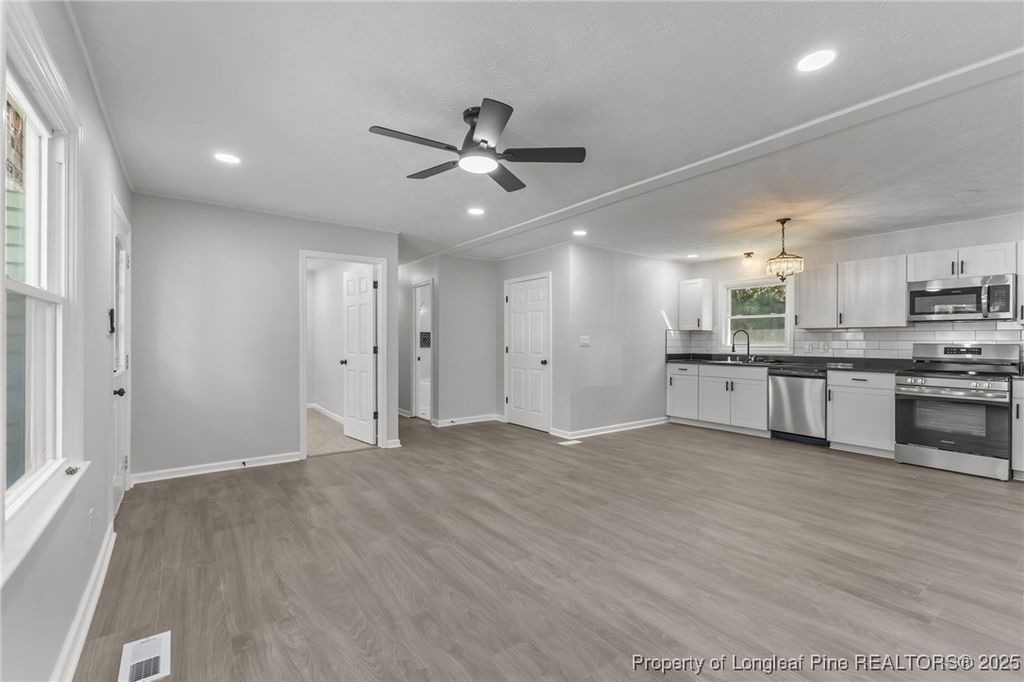 Beautifully updated 3-bedroom home with bonus room. This move-in-ready property features 3 bedrooms, 2 fully renovated bathrooms, and an additional room perfect for a home office, playroom, or guest space. Every corner has been thoughtfully refreshed with quality updates and attention to detail. Updates include new drywall, new water heater, some updated plumbing, all new windows, some new doors, new light fixtures, and recessed lighting. The open-concept kitchen seamlessly connects the living and dining areas and showcases brand new cabinets, granite countertops, and a stylish backsplash. The dining area features a stunning accent wall that adds character to the space. Both bathrooms have been completely remodeled with modern finishes, offering a clean and timeless look. Additional improvements include a new vapor barrier and a recent termite treatment completed by Canady's Termite & Pest Control. The termite bond is transferable to the new owner, providing added peace of mind. The home also includes a convenient storage unit outside. Seller is offering $8,000 towards buyer closing costs, making this home an excellent value. Located just minutes from the Goodyear plant, shopping and restaurants, and only 10 minutes to Fort Bragg.