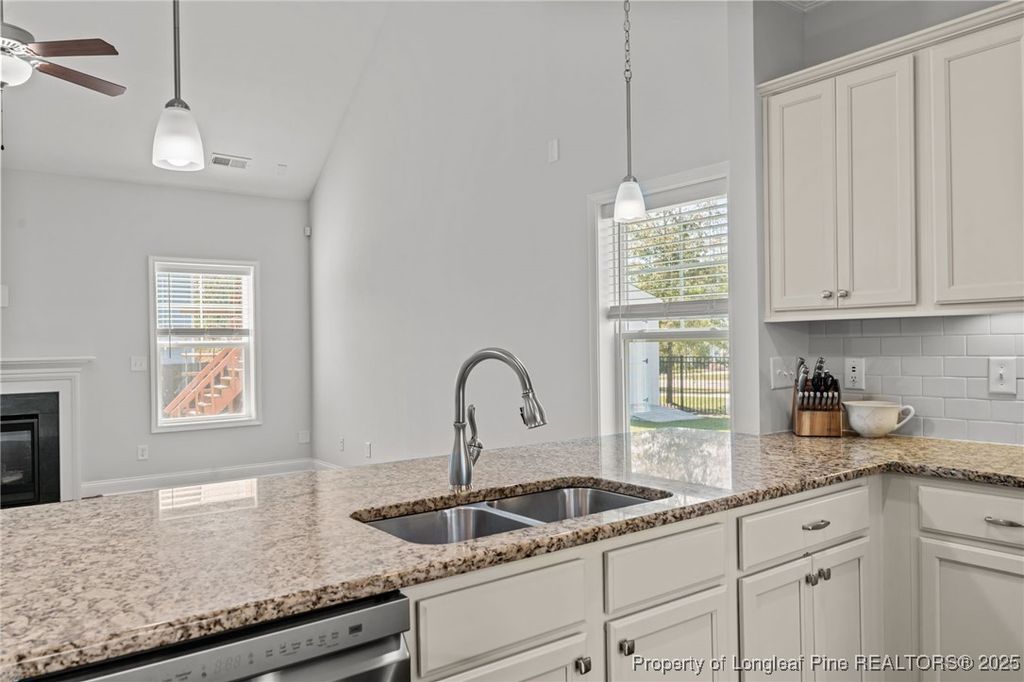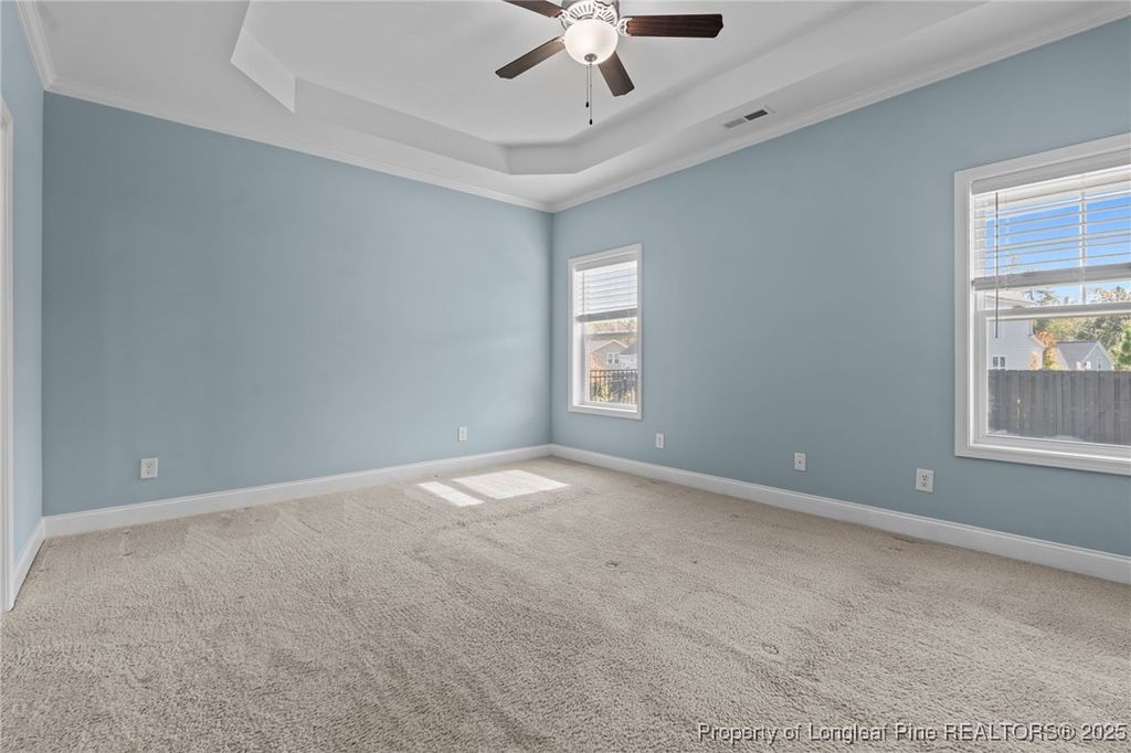 Welcome to this beautifully maintained and freshly painted 4-bedroom, 2.5-bath home nestled in the desirable Carolina neighborhood. The main level features a formal dining room and an open-concept kitchen and living area, ideal for entertaining and everyday living. The kitchen offers new stainless-steel appliances including a gas stove, refrigerator, and dishwasher, a spacious island, and a pantry. The primary suite on the main level provides a peaceful retreat with an ensuite bath featuring a soaking tub, separate shower, and his-and-her vanities"”plus direct access to the main-level laundry room for added convenience. A half bath completes the main floor layout. Upstairs, you'll find a versatile loft area along with three spacious bedrooms and a full bath. Step outside to a fenced backyard showcasing a manicured lawn, established landscaping, a storage shed, and a covered patio"”perfect for relaxing or entertaining outdoors. The home is also wired and includes a dedicated gas line, making it ready for a whole-house generator installation. Residents of the Carolina community enjoy amenities including a pool, clubhouse, fitness center, and scenic walking trails and a 3 hole golf and driving range. Conveniently located just minutes from downtown Southern Pines, with easy access to US-15/501, Pinehurst, Whispering Pines, and Sanford, this home offers the best of Moore County living.