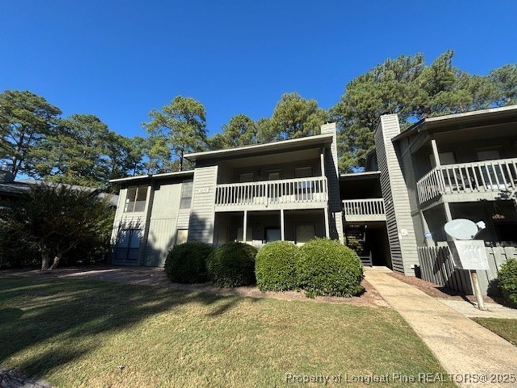 This is a second-floor condo located in building 1874 (Phase VI) that would be a great opportunity for a Buyer looking for a rental or a place of their own to live in. The condo had some previous updates in December of 2000 (carpet, paint, kitchen vinyl, and appliances) but it's time for a modern renovation. The HVAC was replaced in 2018, and the balcony door was replaced in 2022. The condo features a cathedral ceiling in the living room and dining area, washer/dryer hook-ups in the laundry space off the hall bathroom, one bedroom across from the hall bathroom, a primary bedroom with an en-suite bathroom, and a walk-in closet. Located close to shopping, restaurants, entertainment, and a short travel time to the All-American Freeway, I-295, I-95, Fort Bragg, Simmons Army Air Base, Pope Army Airfield, hospitals, and schools.