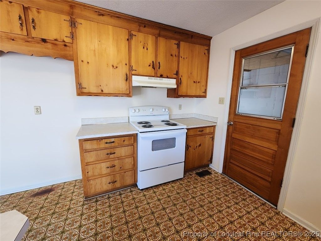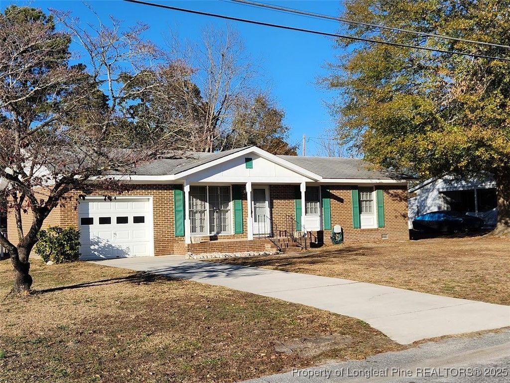 Welcome home to this charming 3-bedroom brick, 1.5-bath ranch, which was lovingly maintained by its original owner! This inviting home offers timeless character and everyday comfort, starting with a welcoming front porch accented by classic wrought iron railings. Inside, you'll find a cozy eat-in kitchen featuring solid wood cabinets, a brand-new range, and retro tile flooring that adds a touch of vintage charm. Sculptured carpet flows throughout the home, and beautiful wooden closet doors enhance the warmth and craftsmanship found in every room. Step from the kitchen through the sliding glass doors into a large, fenced backyard, perfect for outdoor entertainment, gardening, pets, or simply relaxing in your own private space. Conveniently located near shopping, schools, Fort Bragg, and more, this well-cared-for ranch offers comfort, character, and an unbeatable location. Don't miss your opportunity to own this delightful home"”schedule your showing today!