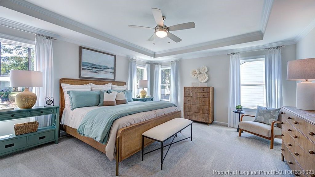 What's Special: Pond View | Covered Patio | No Rear Neighbors | Oversized Pantry | Model Plan - New Construction - January Completion! Built by America's Most Trusted Homebuilder. Welcome to the Hamilton at 507 Claftin Street in Hickory Grove! This two-story home offers an open concept design filled with natural light. From the covered front porch, step inside and pass the formal dining room that connects to the kitchen through a butler's pantry. The kitchen features a center island and a casual breakfast area that flows into a spacious great room. A private secondary bedroom with a full bath is tucked away off the great room. Upstairs, enjoy a versatile loft, two secondary bedrooms with a shared bath, and a convenient laundry room. The primary suite sits at the back of the home for added privacy, with an attached bath that includes a dual vanity, large shower, and two walk-in closets. Families near Sanford, North Carolina, benefit from top-rated Lee County schools and nearby higher education options like UNC Chapel Hill, NC State, and Central Carolina Community College. Sanford blends small-town charm with big-city convenience, offering boutique shopping, dining, outdoor recreation, local farms, art, history, and strong job opportunities. Additional highlights include: covered back patio, main floor bedroom and full bathroom, tray ceiling in the dining room, butler's pantry, open stair railing, additional windows in the primary bedroom, and a dual sink vanity in the hall bathroom. Photos are for representative purposes only. MLS#754622