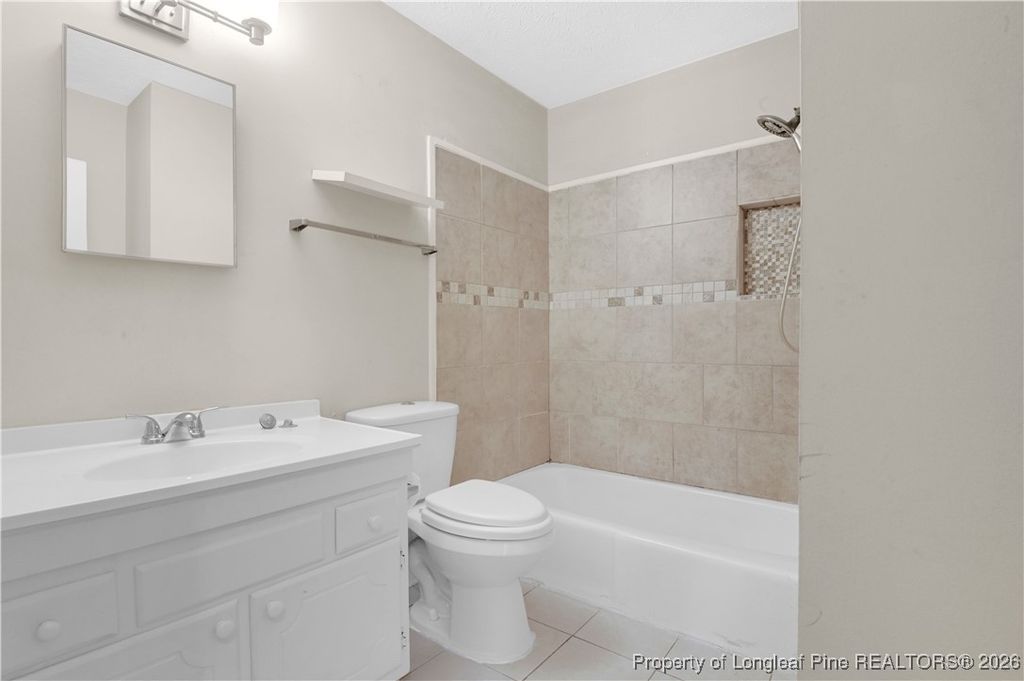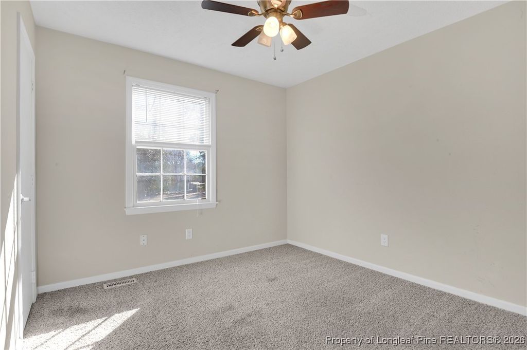 Welcome home to this spacious and well-maintained property offering multiple living areas, abundant natural light, and a functional layout ideal for everyday living and entertaining. The main level features tile flooring throughout most areas, complemented by LVP flooring in the living and dining rooms, creating comfortable and stylish gathering spaces. Neutral paint tones and ceiling fans throughout add to the home's bright and inviting feel. The kitchen offers ample cabinet storage, generous counter space, and a practical layout that flows seamlessly into the dining area. Bedrooms are well-sized with plush carpeting, ceiling fans, and ample closet space. Bathrooms feature tile surrounds, clean finishes, and classic, low-maintenance design. Step outside to enjoy a private backyard with mature trees and a small deck, perfect for relaxing, grilling, or entertaining. Conveniently located near shopping, dining, schools, and Fort Liberty (formerly Fort Bragg), this home offers a great balance of space, comfort, and location.