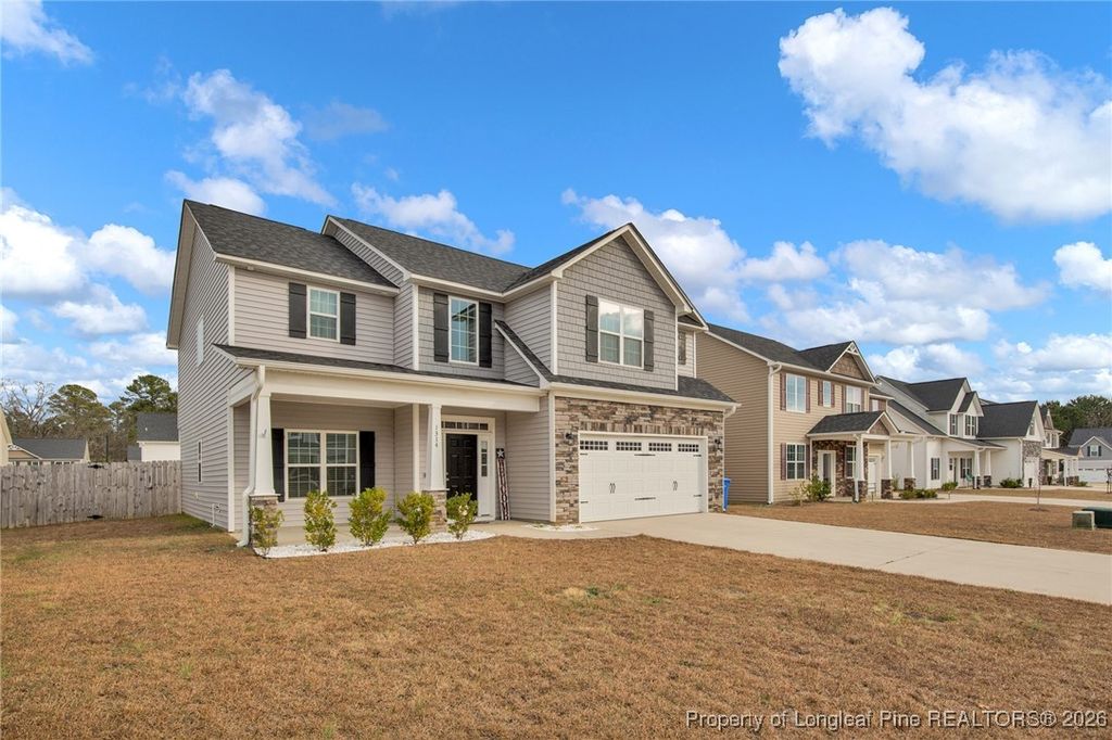 Beautiful 4-bedroom, 2.5-bath home located in the desirable Little River Farms subdivision. Just 3 years old, this well-maintained home features an open floor plan with a stunning kitchen offering granite countertops and stainless-steel appliances, perfect for everyday living and entertaining. Enjoy a formal dining room, spacious living room, and both covered front and rear porches. The fenced backyard provides privacy and space for outdoor enjoyment. All bedrooms are located upstairs and are generously sized. The primary suite boasts two walk-in closets and a spa-like bathroom with double vanities, a garden tub, and a separate shower. An upstairs laundry room and a two-car garage complete this exceptional home.