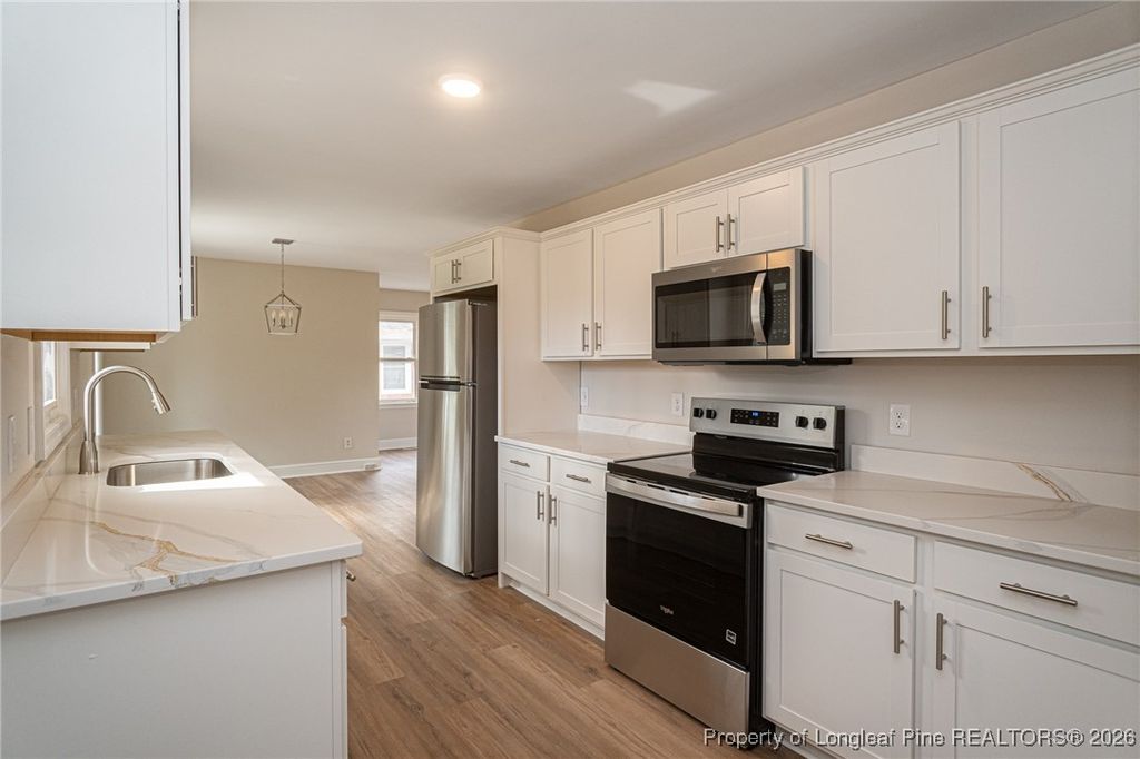 Beautifully updated 3-bedroom, 2-bath ranch-style home offering over 1450 sqft of comfortable living space. The floor plan features a spacious living room, dining area, and a stylish kitchen with stainless steel appliances and quartz countertops. Recent upgrades include LVP flooring, fresh paint, new carpet, new kitchen cabinets, both bathroom vanities, new tub (owners suite) and shower (hall bath), roof (2025), and water heater (2025), ensuring peace of mind for years to come. A perfect blend of modern updates and easy single-level living"”ready for you to move in and make it home!