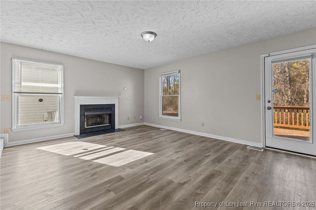 Welcome to this beautifully maintained 4-bedroom, 2.5 bath home. Start your mornings on the charming front porch. As you enter, you'll find a generously sized living room featuring a cozy fireplace that adds warmth and character to the space. The spacious kitchen opens to a large, fenced backyard with a deck, making it perfect for gatherings. All four bedrooms are located upstairs, each equipped with walk-in closets for ample storage. The primary suite serves as a true retreat, offering plenty of space and a private bathroom. Additionally, this home features a two-car garage and a long driveway that provides plenty of parking. It is conveniently situated near Fort Bragg, shopping, dining, and more!