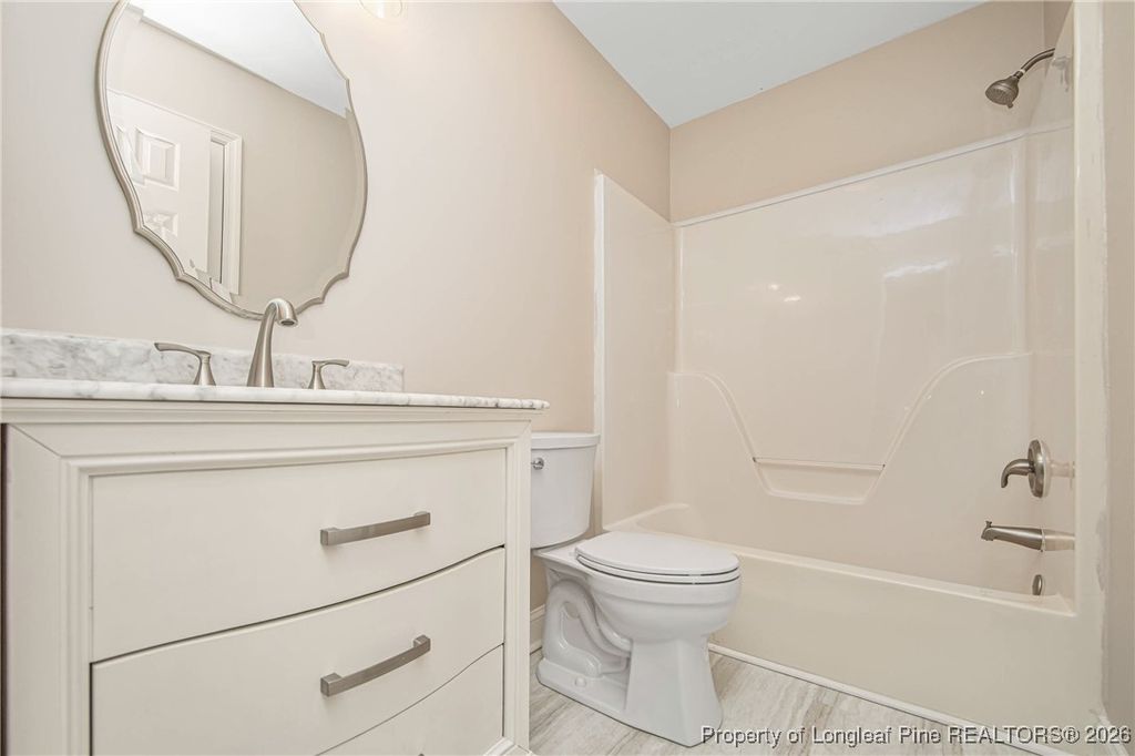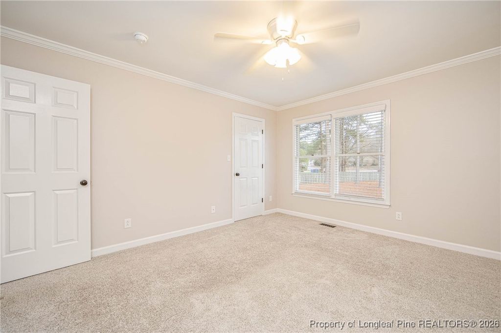Welcome to "12 on 12" private townhome community tucked along #12 green @ King's Grant Golf & Country Club. Entry flows easily through the no carpet main level with neutral tones and crisp white trim. Kitchen equipped with granite tops, stainless steel refrigerator/dishwasher/smooth top range/sleek farmhouse sink with gooseneck faucet~Breakfast Nook with chandelier~Open Family room offers gas fireplace with marble surround, ceiling fan, and flex space. Upstairs privacy level with TWO spacious primary bedrooms with ample natural light, each featuring an on-suite bathroom & generous walk in closet~Laundry area with shelving. A detached golf cart (or storage) unit is included with this home. Whether relaxing indoors or unwinding on back deck overlooking golf course, this sophisticated charmer ensures function & flair. *King's Grant Golf & Country Club offers Golf & Social memberships, full restaurant & bar(more info: https://www.kingsgrantgolfcc.com/). Conveniently located near Methodist University, Ft. Bragg, 295 to I95, shopping, and MORE!