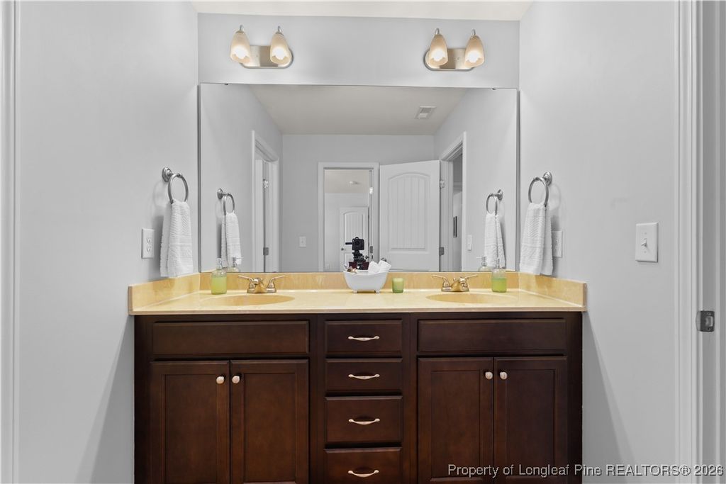 Beautifully maintained 3-bedroom, 2.5-bath home located in Lillington, North Carolina. This inviting property features an oversized two-car garage and a private, fully fenced backyard, ideal for relaxing, entertaining, or accommodating pets. The well-designed floor plan offers spacious living areas that flow effortlessly, providing comfort for everyday living and flexibility for hosting guests. The large kitchen is a true standout, offering quartz countertops, ample cabinetry, and a walk-in pantry, making it both functional and stylish. Downstairs, architectural details shine with a coffered ceiling and elegant wainscoting, while an electric fireplace adds warmth and character to the main living space. The primary suite is generously sized and features a tray ceiling, creating a peaceful retreat. The en-suite bathroom includes a walk-in shower, garden tub, and plenty of space for relaxation. Two additional guest bedrooms are thoughtfully connected by a Jack-and-Jill bathroom, offering convenience and privacy. A large laundry room adds to the home's everyday practicality. Enjoy the freedom of no HOA while benefiting from convenient access to local shopping, dining, schools, and major roadways. This is a fantastic opportunity to own a well-maintained home in a desirable location, offering space, privacy, and flexibility.