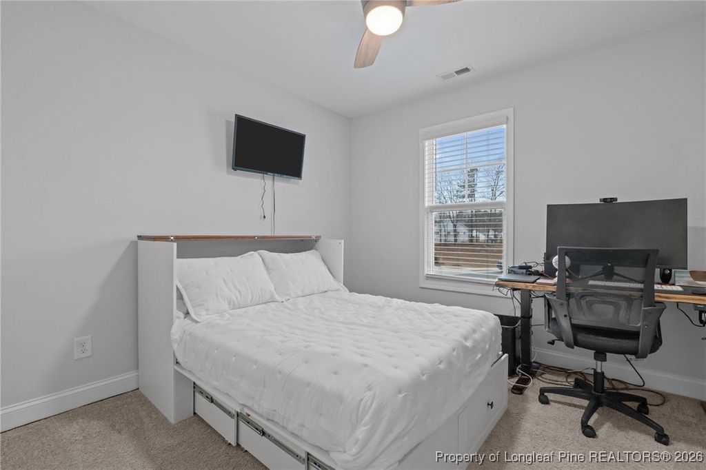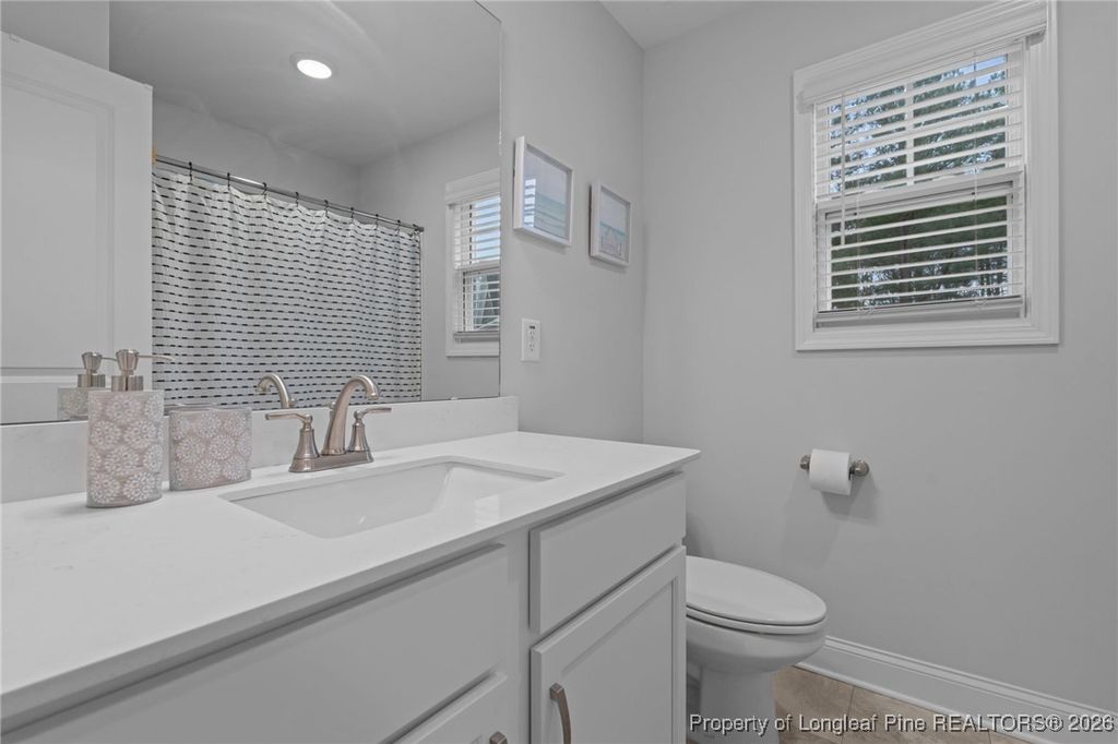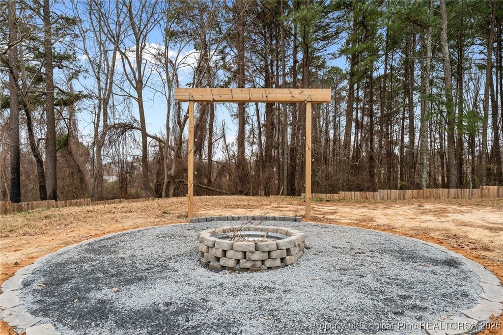 This beautifully maintained two-story, 3-bedroom, 2.5-bath home offers a bright, open-concept floor plan in move-in-ready condition, delivering the feel of new construction without the wait. Sanford's central location provides commuting access to Fort Bragg, Southern Pines, and Raleigh, while still offering a quiet, residential feel just minutes from downtown Sanford. The possibilities are endless on this remarkable 0.33-acre lot, fully enclosed by a 6-foot privacy fence, with covered front and back porches and a cozy firepit area perfect for gatherings with friends and family. The front of the property is lit by permanent exterior smart lights, effortlessly highlighting the home's architecture. The one-car garage provides even more space for storage and additional uses. On the first floor, luxury vinyl plank runs throughout for easy cleaning and durability. The spacious dining room flows seamlessly into the kitchen, which serves as the heart of the home, featuring granite countertops, a large island ideal for entertaining, and stainless steel Whirlpool and GE appliances. The kitchen overlooks the living room, complete with built-in cabinets and a cozy fireplace, creating a perfect space for hosting and everyday living. The second floor features a spacious master bedroom with tray ceilings, an en suite bathroom with a double vanity, and a generous walk-in closet. Additional bedrooms offer flexibility for home offices, guest accommodations, or extra living space. With its move-in-ready condition, built-in upgrades, and prime location, this home delivers the feel of new construction"”without the wait.