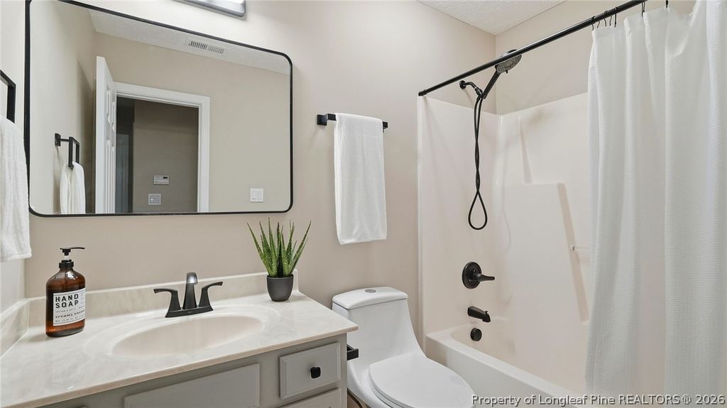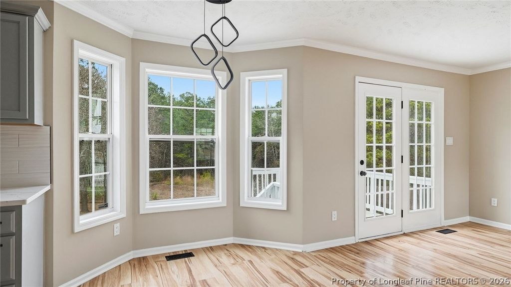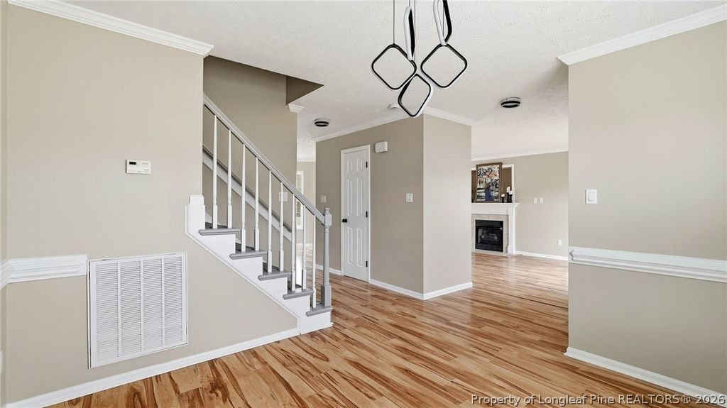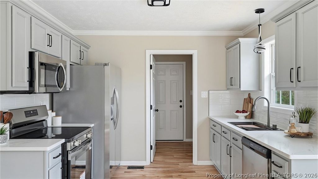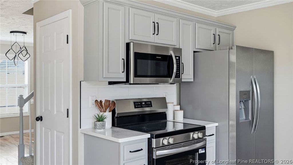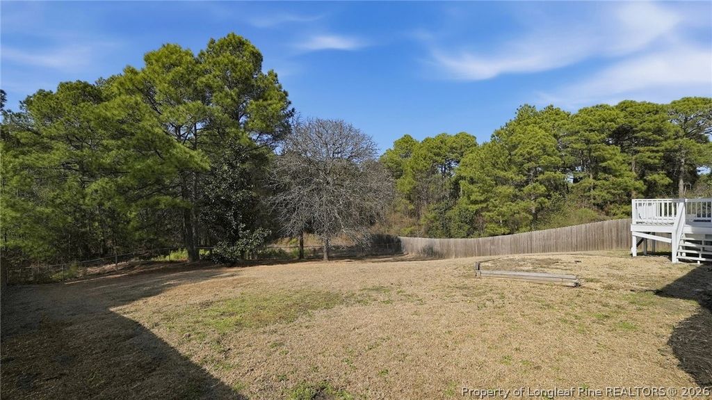 This beautifully renovated home with 3 bedrooms and 2.5 bathrooms features new laminate plank floors, new carpet, all new fixtures, new toilets, new hot water heater, and fresh paint throughout. The updated kitchen offers new quartz countertops, new tile backsplash, all new stainless steel appliances, and a new workstation sink. The spacious and open living area is filled with natural light and includes a formal dining room, interior laundry room, and a half bath. Upstairs are all 3 bedrooms, and the comfortable primary suite features dual vanities, jetted tub, walk-in shower, and a walk-in closet. Situated on a large .46 acre lot that backs up to the woods and has a fully fenced in backyard with a new deck. Conveniently located 12 minutes from Cape Fear Valley Hospital, 15 minutes from Downtown Fayetteville, and 20 minutes from base, this gorgeous house is ready for a new family to make it their home. Schedule your showing today!