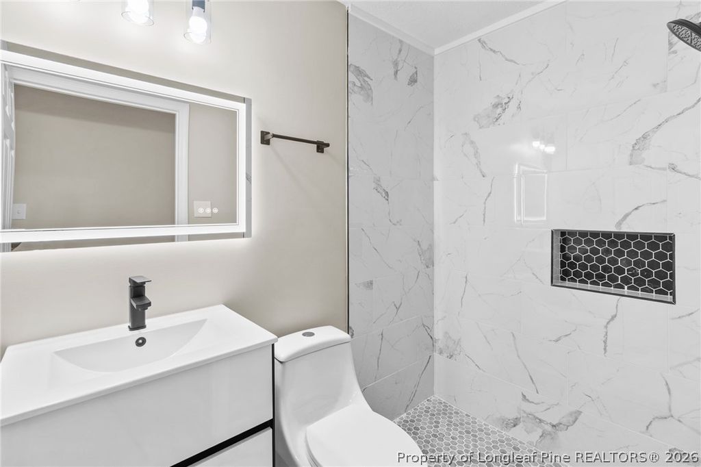 Quiet country living! This beautifully renovated all brick home features all new laminate plank floors, new luxury vinyl plank in the bathrooms, new carpet in the bedrooms, and fresh paint throughout. The updated kitchen offers new quartz countertops, all new stainless steel appliances, new tile backsplash, and new workstation sink. Both bathrooms have been fully upgraded with new vanities, new fixtures, and beautiful tile showers. Located in a rural area of Raeford on almost half an acre that backs up to a wood line, convenient to both Moore County and Fort Bragg, this cute and cozy house is ready for a new family to make it their home. Schedule your showing today!