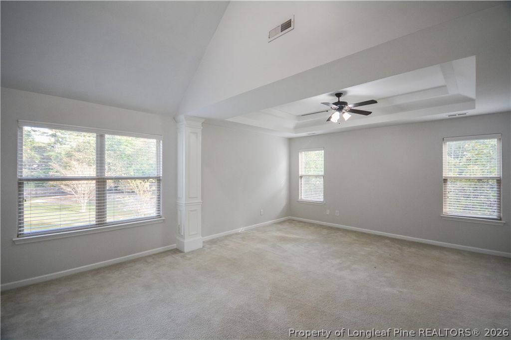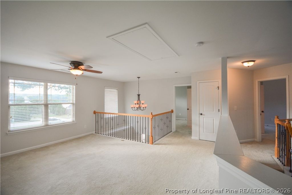 Welcome to your dream home in a beautiful gated community with stunning water views! This FRESHLY painted gem sits on a spacious, fenced-in .68-acre lot and features an extended, covered concrete patio perfect for outdoor entertaining or simply relaxing in the peaceful surroundings. Step inside to soaring cathedral ceilings and an open-concept layout that blends comfort and style. The modern kitchen boasts a large island, plenty of prep space, and a dedicated wine fridge, ideal for hosting guests or enjoying quiet evenings at home. Kitchen has been UPDATED with NEW cabinetry and granite countertops. On the main level, you'll find brand NEW LVP flooring throughout entire 1st floor living bathroom and entertaining areas. A full bathroom and bedroom on the first floor ready to become your home office, playroom, or hobby space, guests, multi-generational living"”whatever suits your lifestyle. A gorgeous formal dining room w/ coffered ceilings, picture frame moulding and oodles of natural light. Upstairs, two more secondary bedrooms share a convenient Jack and Jill bathroom, while a spacious loft offers even more room to relax or entertain. You'll love the large laundry room tucked away upstairs for ultimate convenience. The oversized master suite is a true retreat, featuring two walk-in closets"”one off the bedroom and one off the luxurious en-suite bath. The master bathroom is generously sized with a deep soaking tub, separate shower, private toilet closet, and linen storage. Vaulted and tray ceilings throughout the home, along with an abundance of natural light, add to the warm, welcoming atmosphere. March 2026 - NEW HVAC installed by Edwards & Edwards with 5 ton Rudd with 1 year labor 10 year parts. NEW Thermostats. 90 days to register unit or it will be 5 year parts! 2025 Updated kitchen and NEW flooring! September 2022 - Roof replaced! There is a moisture barrier under the concrete covered patio outback. This is more than just a house, it's a place to call home. Come see it for yourself! *Carolina Lakes amenities: 24-hour guarded gate, 7 lakes, marina, volleyball, golf course, club house & community pool, playground, tennis/basketball courts, walking trails and summer time farmers markets and more!