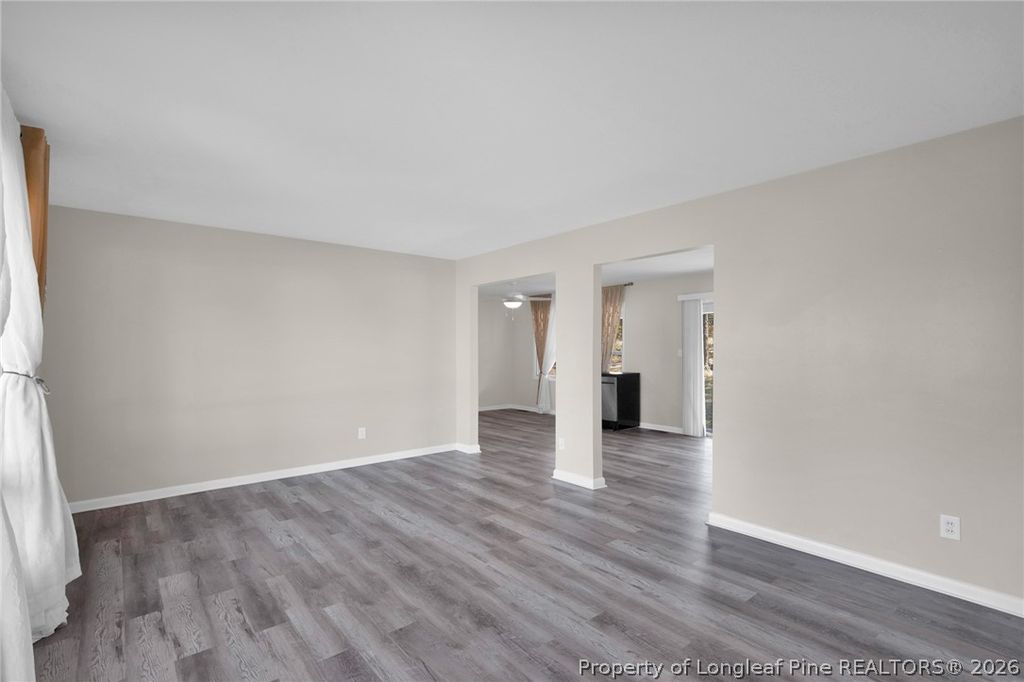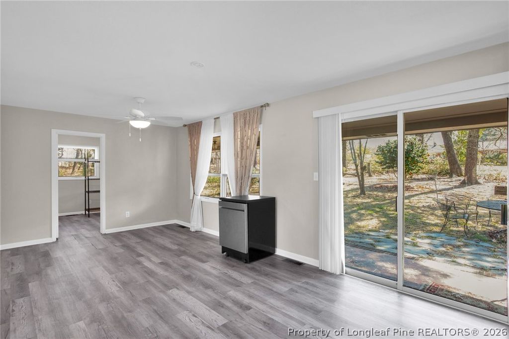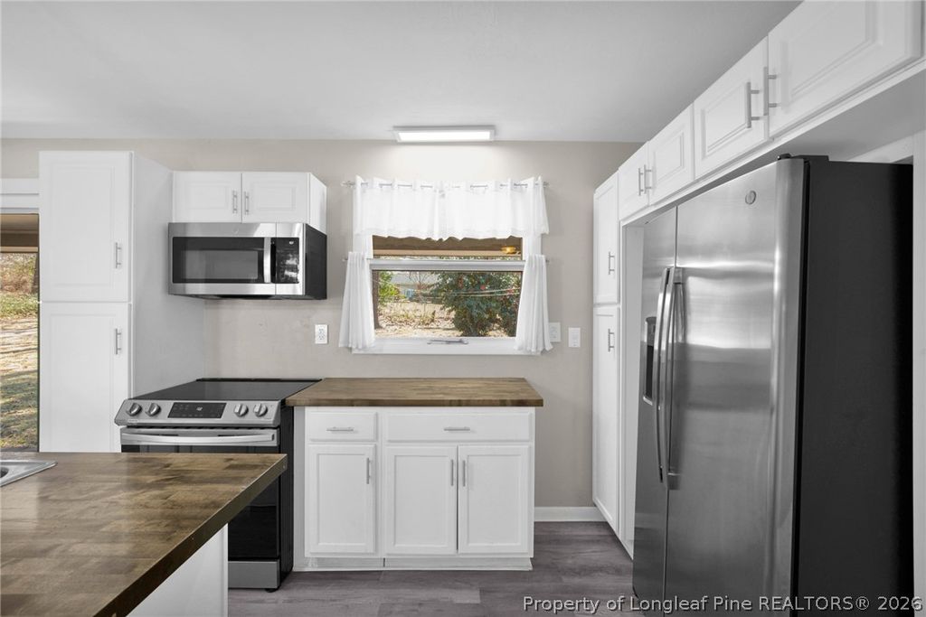 Welcome Home! This beautifully renovated 3-bedroom, 2-bath brick ranch in a peaceful neighborhood offers over 1,500 square feet of comfort and style. Inside, an open-concept floor plan with large windows and wood floors creates an airy, inviting space perfect for cozy family evenings or entertaining guests. The kitchen is equipped with stainless steel appliances, butcher-block countertops, and a large island. The master suite features a private bath with a luxurious walk-in shower. Two additional bedrooms provide ample space for family, guests, or a home office. Outdoor Oasis! Step outside to a large, fenced backyard with a covered patio and firepit - perfect for relaxing or hosting friends. There's plenty of room for kiddos and furry friends to play. Prime Location! Situated on a 0.75-acre corner lot, this home is close to downtown, the hospital, airport, and Highway 295, offering quick routes to Ft. Bragg or I-95. This charming home combines modern living with convenience - Don't miss your chance to make it yours!