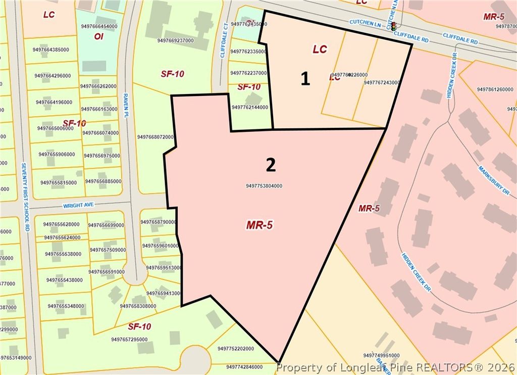 This Multi- Family Lot (Lot 2 in the attached pictures) is 11.45 Ac, zoned MR5 - Mixed Residential District. The topography is mostly leveled at road grade. A small rear portion of the property is low and wet (approx .97 Ac) per public records and is designated swamp/waste. 34,500 VPD (NCDOT 2022). Adjoining lot (Lot 1 in the attached pictures) is 4.44 Ac zoned LC, Limited Commercial District is also for sale for $1,315,000.