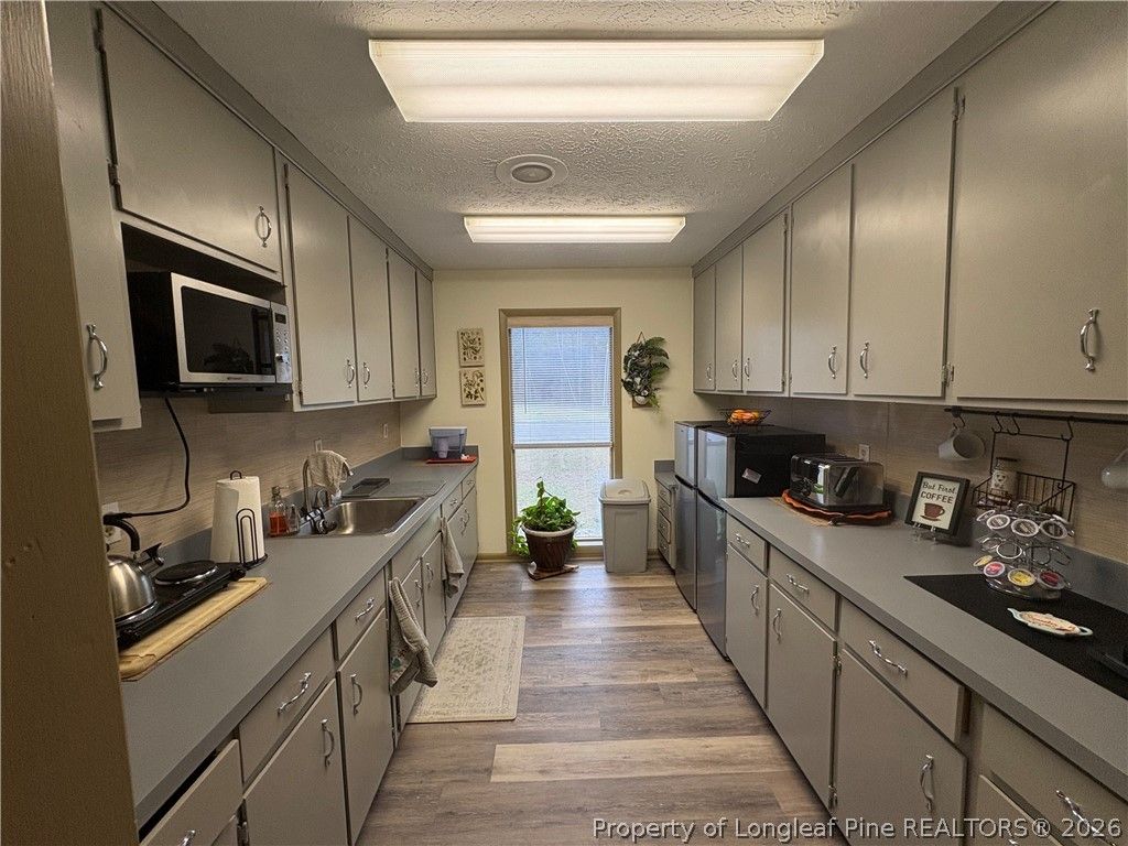 Office Space available in Hope Mills! Conveniently located to Hope Mills, Hwy 301, and I-95! Paved parking lot with front and side entrance. Common areas to include conference room when needed and break room as well as handicap accessible bathroom and entrance. Office space is about 150 square feet. New paint and New flooring! Furniture in photos can remain for tenant use or can be removed with notice. Water/sewer/electric utilities included in rent. $350/month