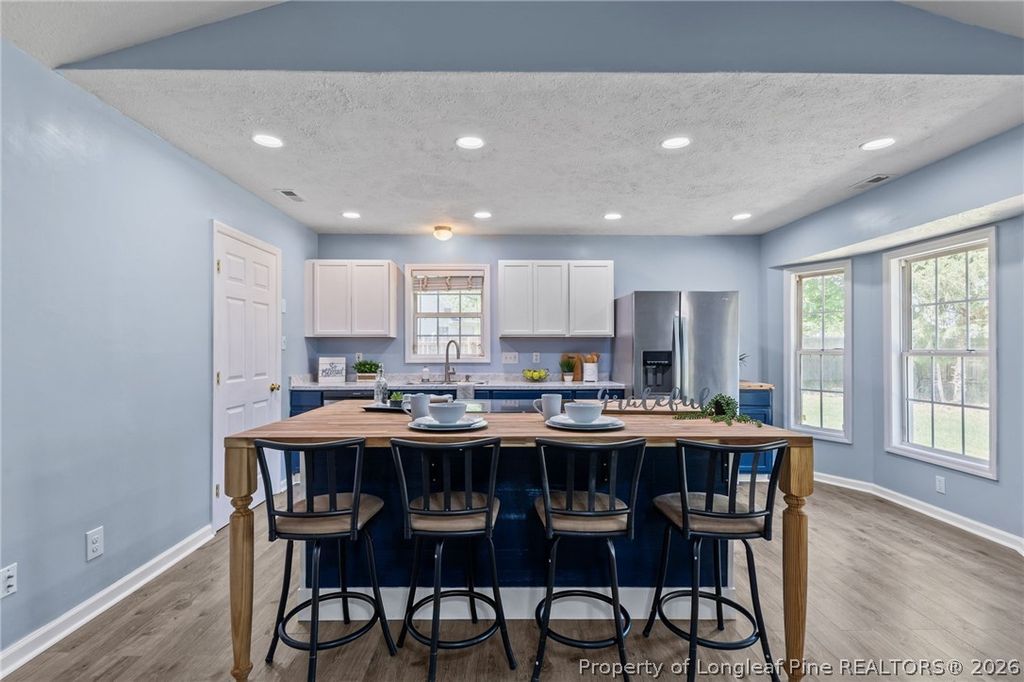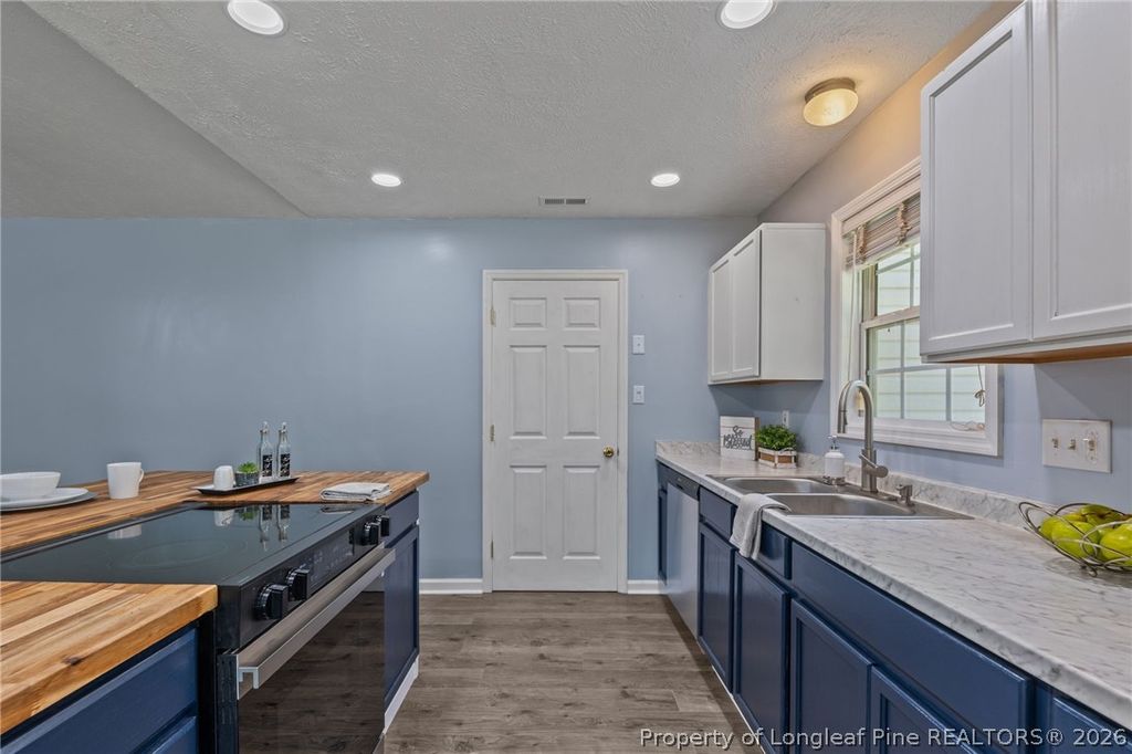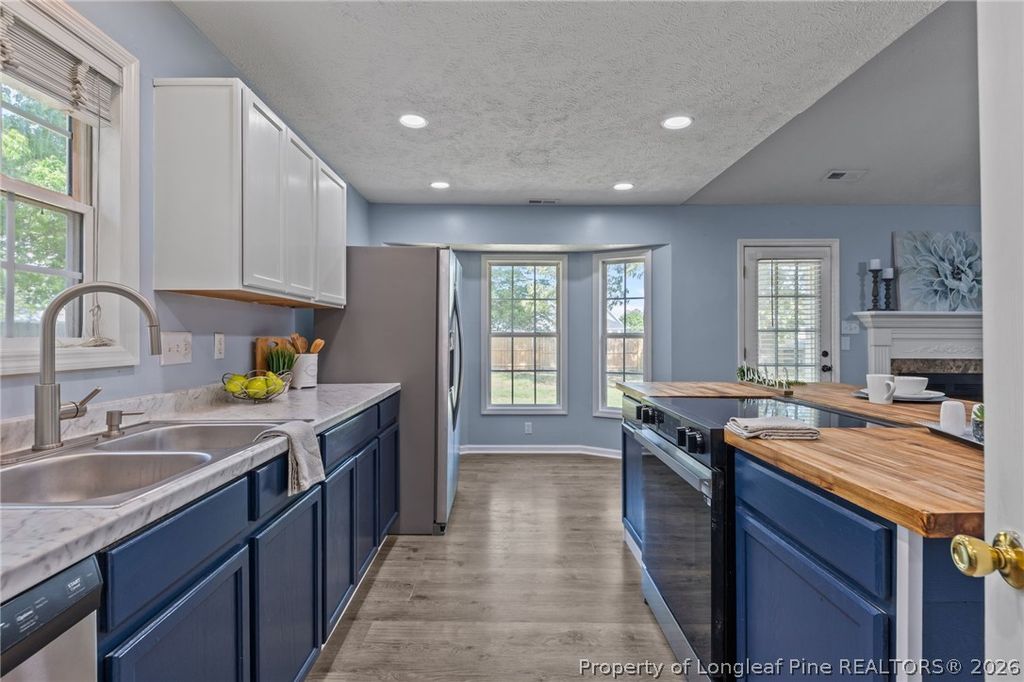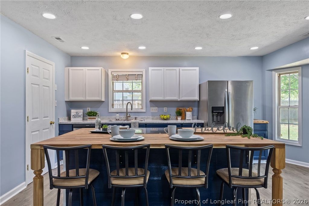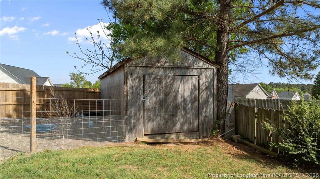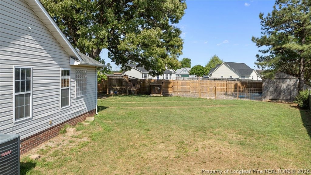 If space and luxury is what your next home requires then look no further! This adorable 3bed/2 bath home features a large bonus room which could be a fourth bedroom or flex space. Located in Raeford at the end of a quiet culdesac, this home sits on a generous .6 acre lot. Fully fenced in 2025. Vaulted ceilings, open concept living and LVP Flooring throughout means no carpet and easy cleanup. Gorgeous kitchen island with butcher block counters and stainless appliances are only a few things to boast about. HVAC less than 7 years old. Roof installed 2025. Oversized double car garage provides plenty of storage. Back outside you will find a private backyard with mature trees and a duck pen. Large shed completes the exterior. Located close to schools, shopping and Fort Bragg. All at a STEAL of a price. Don't walk. Run to see it before its gone.