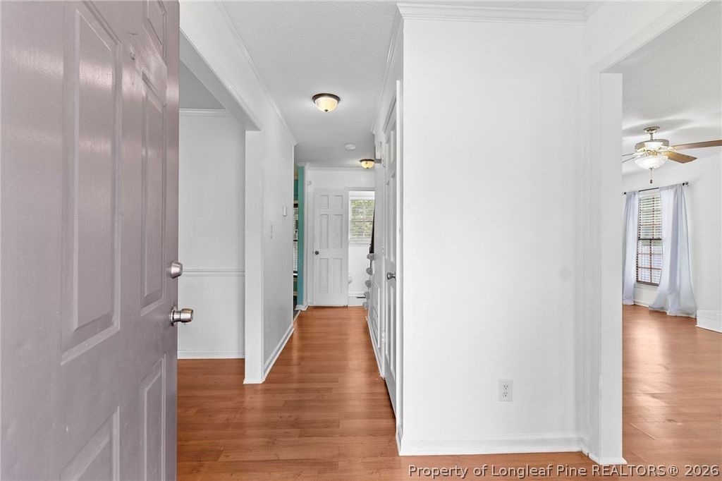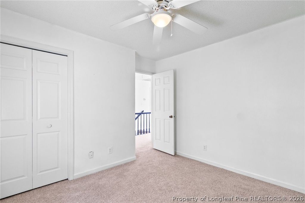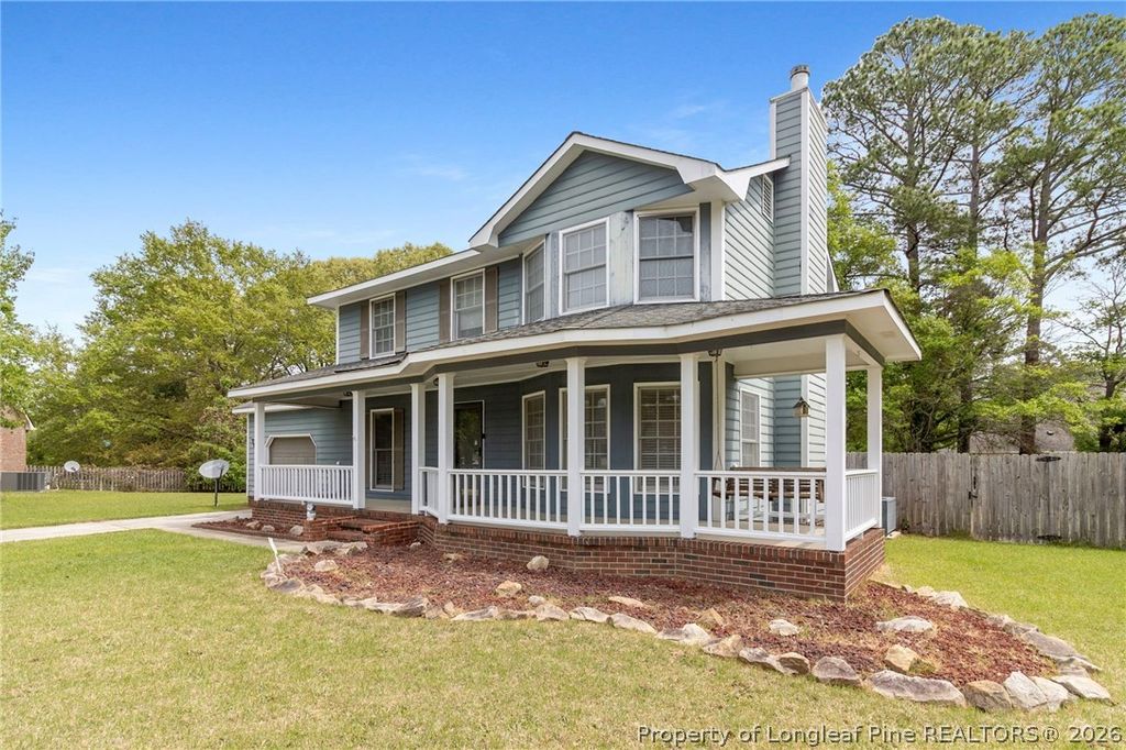 Cul-de-sac living at its best. This home features a large backyard with full privacy fencing, perfect for outdoor activities. The spacious front porch comes complete with a porch swing, making it a great spot to enjoy North Carolina weather. All bedrooms are located upstairs, including a large primary bedroom with a generous walk-in closet. The kitchen offers stainless steel appliances. Recent updates include a brand-new carpet upstairs (2026), dishwasher (2023), gas water heater (2025), HVAC unit upstairs (2020) HVAC unit downstairs repairs were done (2025), newer storm door. The crawl space was encapsulated with vents closed along with a dehumidifier (2025), adding efficiency and peace of mind. Conveniently located with an easy commute to Fort Bragg, shopping, and I-295.
