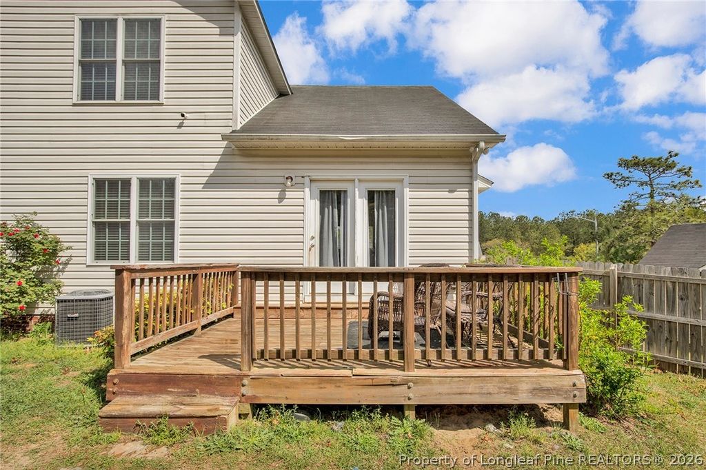 Welcome to this well-maintained two-story home located in the desirable Saddle Ridge community of Fayetteville. Featuring 3 bedrooms and 2.5 bathrooms, this home offers a functional and inviting layout with all bedrooms situated upstairs and a convenient half bath on the main level. The main floor offers an open-concept design connecting the kitchen and living area, creating a comfortable space for everyday living and entertaining. The kitchen provides ample cabinet storage and workspace, with a practical layout. Upstairs, you'll find a spacious primary suite along with two additional bedrooms and a full bath, as well as a conveniently located laundry area. Enjoy outdoor living in the fully fenced backyard"”perfect for pets, play, or gatherings"”along with a charming wooden porch ideal for relaxing evenings.