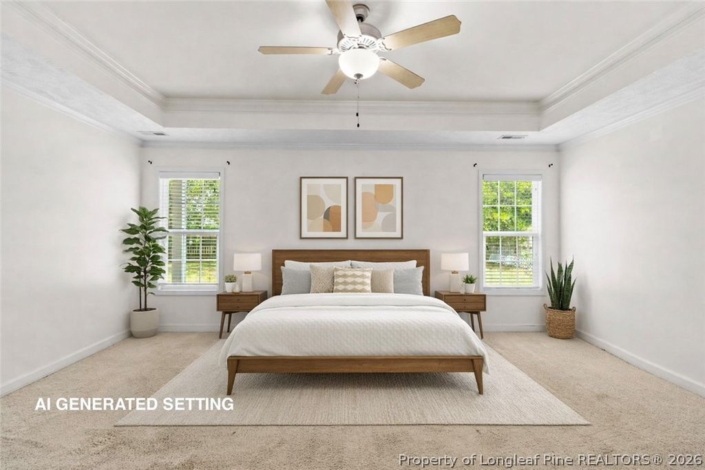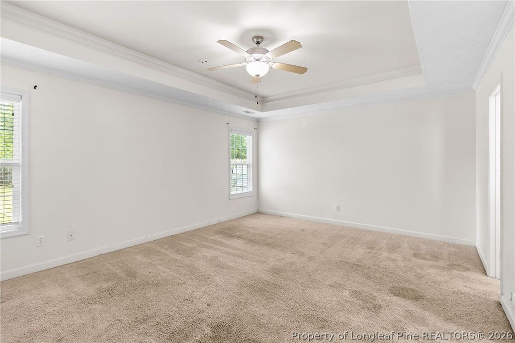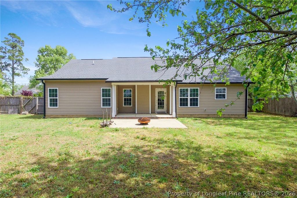 YOU ARE HOME in this beautiful rancher in La Grange, just off of Reilly Rd. It's close to amenities, access to I-295, and less than 10 minutes to Ft. Bragg. Great layout with open concept living area, this home has cathedral ceilings in the living room and tray ceiling in the Primary bedroom. Covered front porch in the front and covered patio in the back both provide protection from the elements while still giving you the ability to enjoy the beautiful Carolina seasons. The kitchen is equipped with thoughtful cabinet layout for the chef in you and stainless steel appliances. **Great starter home with a $3,000 closing credit and $3,000 credit for paint and carpet or for your choosing**. Don't miss out, book to see us today!