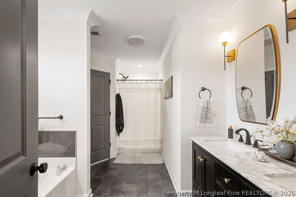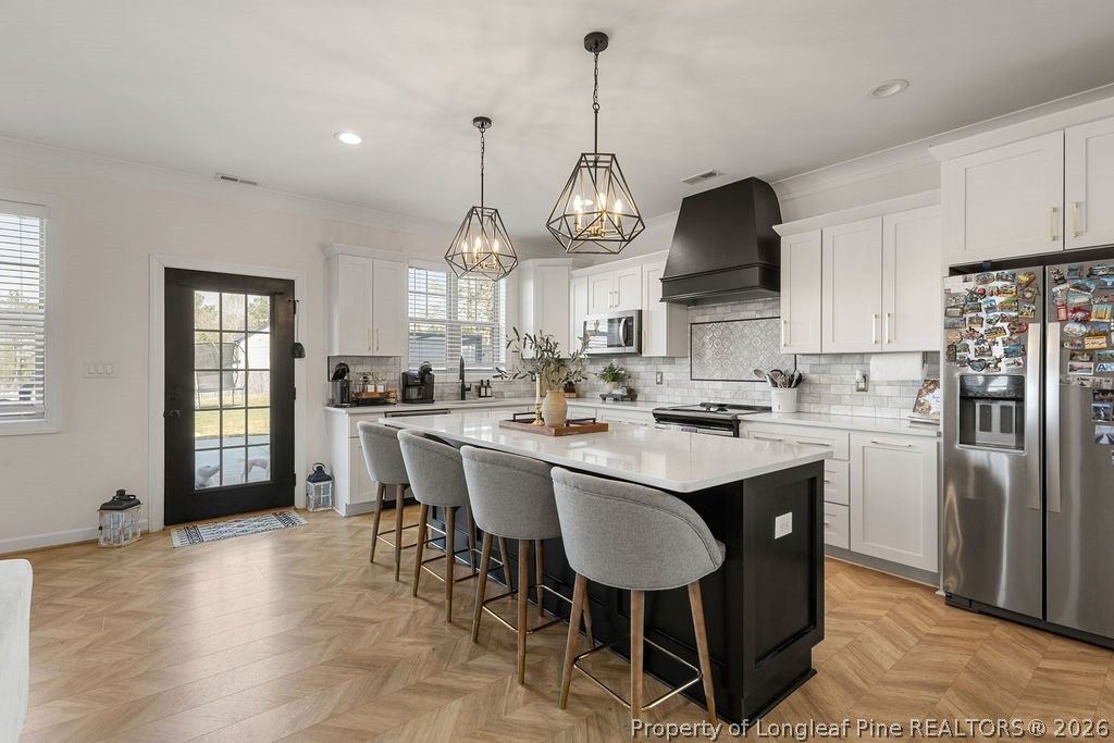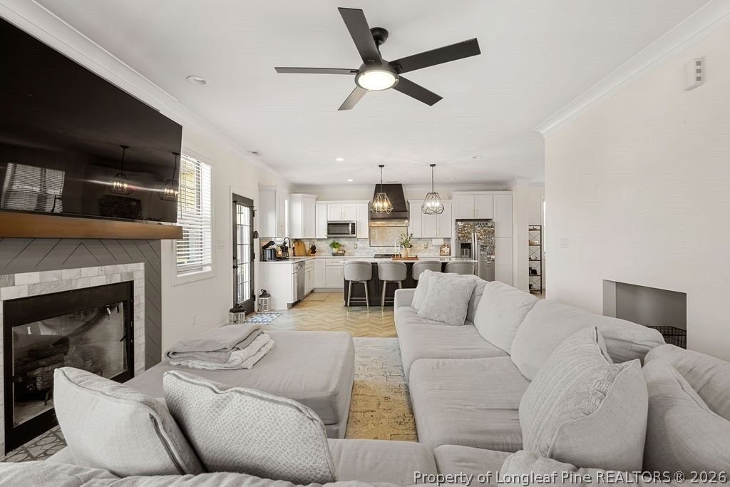 So many custom features"”where do we even begin? This amazing 3 bed, 2.5 bath home offers a beautiful kitchen and an open floor plan perfect for entertaining. You'll love the dedicated office space, spacious bonus room, and tiled bathrooms that add a touch of elegance throughout. The 2-car garage provides plenty of storage, while the large patio and fenced-in backyard create the perfect outdoor space for relaxing or hosting. Conveniently located with an easy commute to Fort Bragg and the Triangle, and best of all"”no HOA! Need we say more? This home truly has it all.