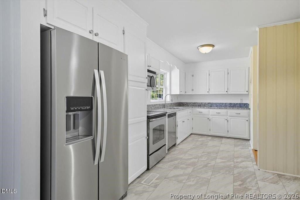 VANSTORY HILLS community! TERRY SANFORD HIGH SCHOOL! Prime location ~ Incredible Value! 1 Car Garage ~ Updated kitchen with granite countertops and stainless steel appliances, a warm and inviting living room with a classic brick fireplace, and a sunroom retreat overlooking the private backyard.Stylishly renovated bathrooms with quartz countertops elevate the home's modern comfort, while the layout offers both charm and functionality. Conveniently located just minutes from shopping, medical centers, major highways, and Fort Bragg.Move-in ready.