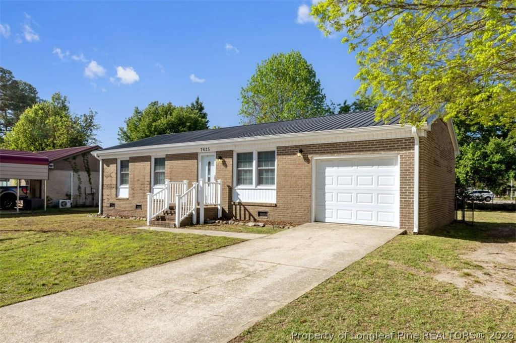 Welcome to this turnkey 3-bedroom, 2-bathroom brick veneer ranch in the established Gardens of Loch Lomond. Whether you are looking for a solid primary residence or a reliable rental asset in Fayetteville, this property delivers immediate value and modern functionality. The home features an efficiently designed 943 square feet of primary living space, complemented by a versatile 300-square-foot finished garage that provides excellent options for a home office, gym, or bonus room. Situated on just under a quarter-acre lot with zero HOA restrictions, you have the freedom to utilize the property exactly as you see fit. Significant capital has been invested into comprehensive updates in 2023 and 2026, ensuring a true move-in-ready experience. The home operates on full public utilities through PWC for water, sewer, and electric, meaning there is no septic system to maintain. Additionally, the structure is protected by a highly durable metal gable roof built for long-term weather resistance. The home is vacant, professionally cleaned, and ready for immediate possession.