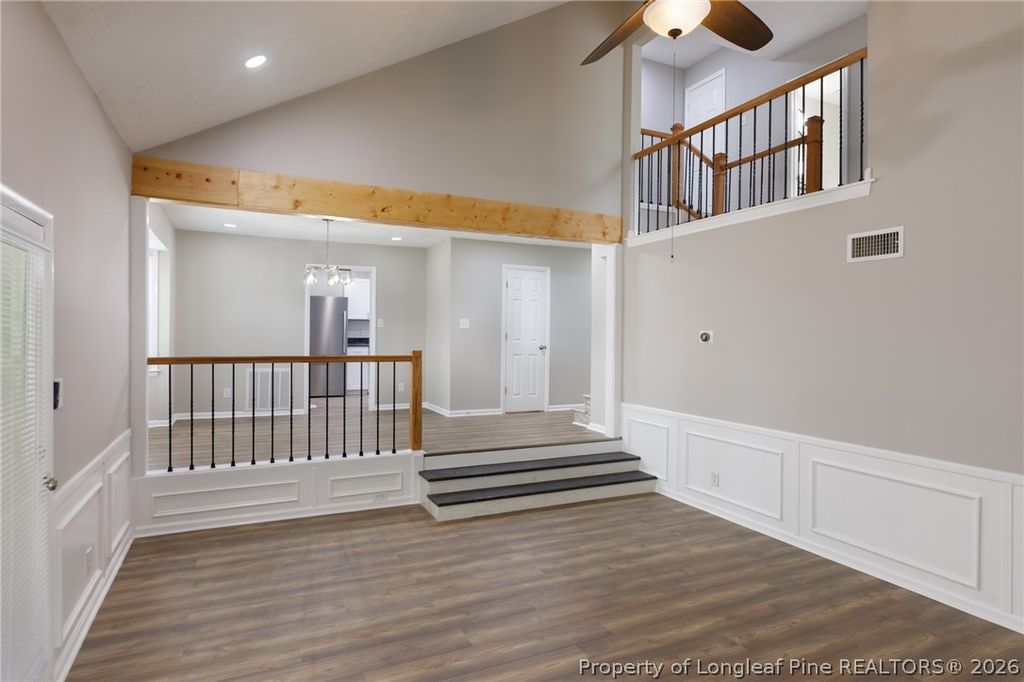 Super unique remodel sure to please! Located on a cul de sac close to I-295 and convenient to Fort Bragg and downtown. Contemporary design with a 1 1/2 story. Fresh paint inside and outside, new kitchen cabinets, new roof, new garage door, new appliances, new backsplash, new LVP flooring downstairs, and new interior doors. So many special features to appreciate here! It starts with the wood beam on the front porch. Another decorative wood beam marks the connection from the formal dining room with a bay window to the sunken living room with wainscoting, a vaulted ceiling, and an accent wall above the wood burning fireplace. Granite surround around the fireplace. Wrought iron railings with wood tops. Powder room nearby with ornate vanity. Granite counters, breakfast nook, SS appliances, LVP floors, and subway tile backsplash in the kitchen. Laundry room off the kitchen. Tons of extra lighting throughout the house with some new fixtures and lots of recessed lights. Sunroom/Carolina room off the living room overlooks the backyard. It comes with granite floors and a bar stand. The 285 separately heated SF in the sunroom is included in the total heated SF of 1801. Patio off the sunroom. Marble stairs lead to the 3 bedrooms and 2 full bathrooms upstairs. Pretty tile above the tub. A balcony landing upstairs provides a nice view of the living room below. Buy this house today to make it home and show it off to all your friends and family!