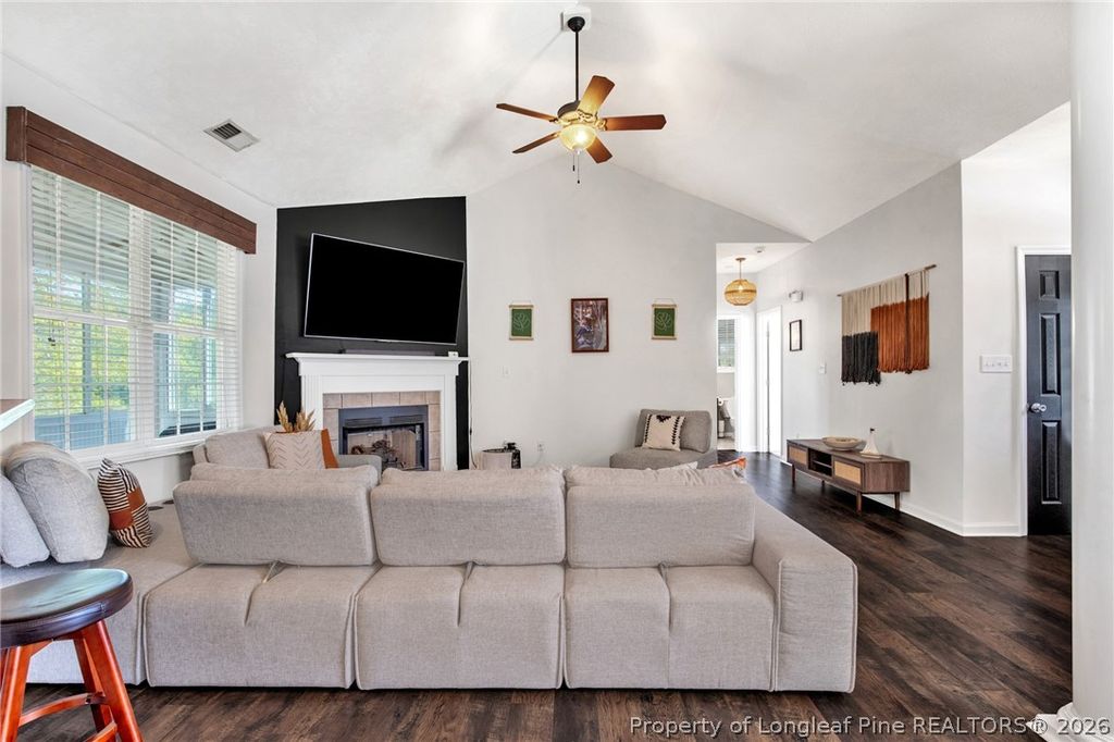 Welcome home to this well-maintained 3-bedroom, 2-bath ranch with a bonus room. Tucked away on a cul-de-sac in Forest View, the layout offers an open main living space with vaulted ceilings and a cozy gas log fireplace. The primary suite is set apart from the other two bedrooms offering added privacy. Primary suite features a walk-in closet, double vanity, jetted tub, and separate shower. Upstairs, the finished bonus room adds flexible space for an office or playroom. Step outside to enjoy the covered screened porch overlooking a spacious, fenced in backyard ideal for relaxing or entertaining. This home also includes a 2-car attached garage. HVAC was replaced in 2022. Refrigerator, shed, swing set, and trampoline set to convey. No pets and non-smoking household. No HOA.