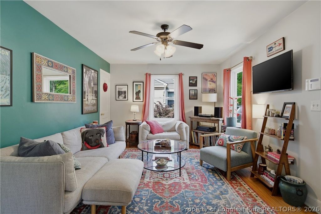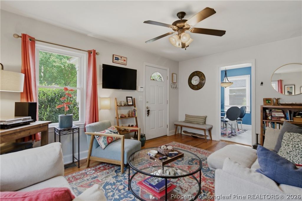 Charming Haymount residence tucked away on a quiet, private street in one of Fayetteville's most sought-after neighborhoods. This 3-bedroom, 1-bath home showcases timeless character with original hardwood floors throughout much of the home, a light-filled galley kitchen, and inviting living spaces designed for comfort. Thoughtfully laid out, the home offers ample storage along with a dedicated laundry room for added convenience. The fully fenced backyard, framed by mature landscaping, provides a private outdoor retreat ideal for relaxing or entertaining. A detached wired garage offers versatile space for a workshop, studio, or additional storage. Ideally located within the Terry Sanford school district and just minutes from Haymount's local shops, dining, and everyday conveniences, this home offers both charm and an exceptional location. A rare opportunity to own a home that blends classic character with everyday livability in the heart of Haymount.