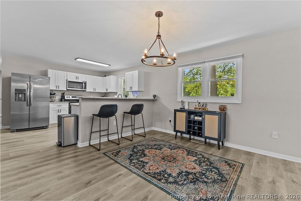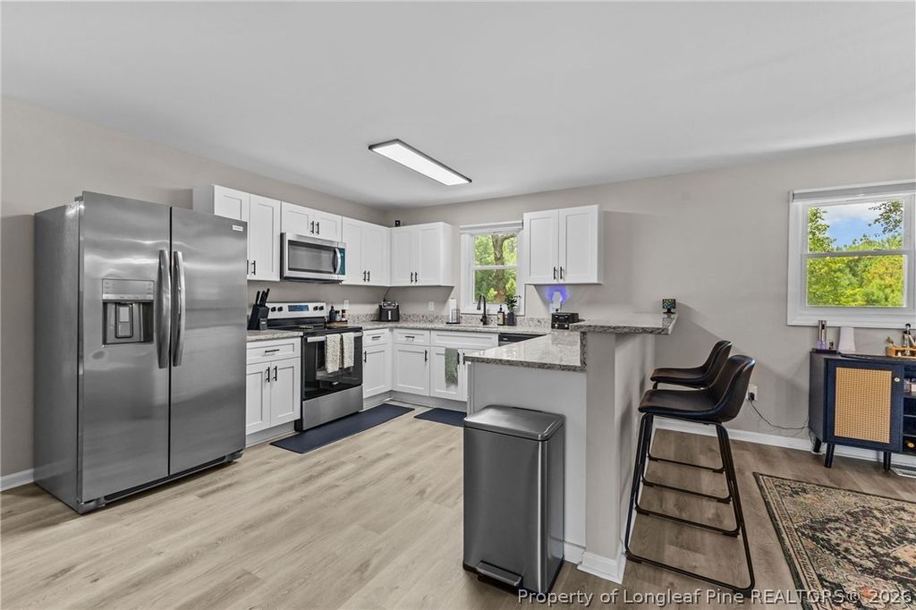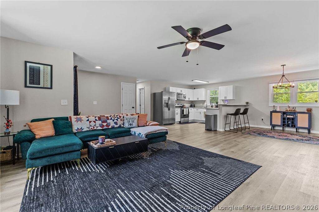Beautifully updated and move-in ready, this spacious ranch-style home offers modern comfort with the freedom of country living. Situated on a generous lot in Garland, this property combines privacy, functionality, and style"”perfect for those seeking space without sacrificing convenience. Step inside to a bright, open-concept layout featuring durable LVP flooring throughout and a seamless flow between the living, dining, and kitchen areas"”ideal for entertaining or everyday living. The fully renovated kitchen showcases granite countertops, white shaker cabinets, stainless steel appliances, and a large bar seating area. The home offers comfortable bedrooms, updated systems, and a dedicated laundry space"”with washer and dryer included for added convenience. Outside, enjoy wide open yard space with mature trees providing shade and character, along with a detached storage building"”perfect for tools, equipment, or hobby use. Relax under the covered carport or take advantage of the unrestricted setting with room for animals, gardening, or future additions. Conveniently located within commuting distance to Fort Bragg and Seymour Johnson AFB, as well as Clinton, Fayetteville, and surrounding areas. If you've been searching for a clean, updated home with land, flexibility, and everyday convenience"”this one checks all the boxes.