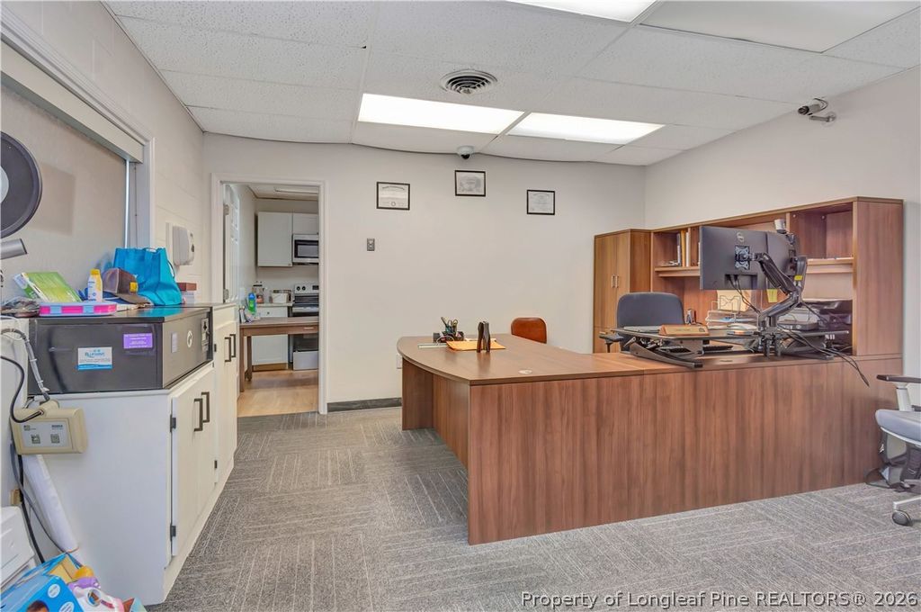 Right in the center of Laurinburg, this corner-lot commercial building sits directly across from the courthouse"”putting your business in a spot that's seen and easy to get to. Inside, the layout is straightforward and usable with a front reception area, three offices, a fully functional kitchen/break room, and just under 1,000 square feet of warehouse space that gives you plenty of room for storage, inventory, or day-to-day operations. There's also a small dedicated IT room already in place. Recent improvements include fresh sheetrock and paint, updated flooring and carpet, and a bathroom refresh with new vanity, toilet, and flooring. Keyless entry is already installed, and parking is tucked behind the building for added convenience. A solid, well-located space that's ready for its next use. Schedule your exclusive tour today!