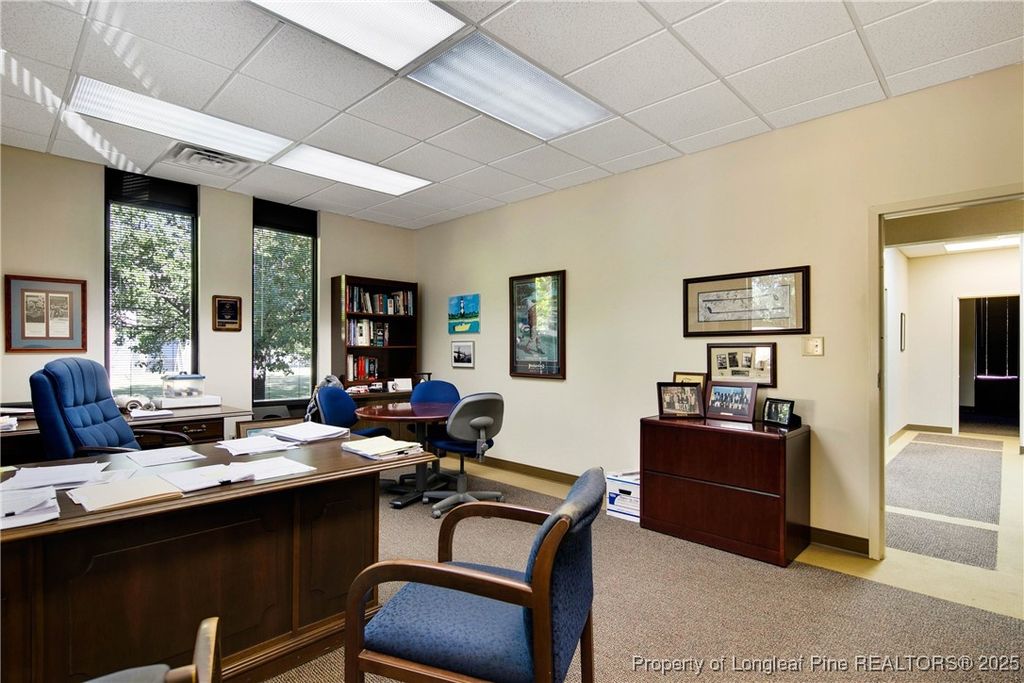 This must-see office building is located on the heavily traveled Raeford Road with easy in and out access. The building consists of a basement level and first floor. The first floor is approximately 5,152+/- Sq. Ft and basement level 2,000+/- Sq. Ft. The office building is made up of 21 offices, 2 conference rooms, 2 restrooms and a kitchen/ break room. Ample parking, which includes 40 spaces, is just one of the many great features to this property. Please contact the listing agent for further information.