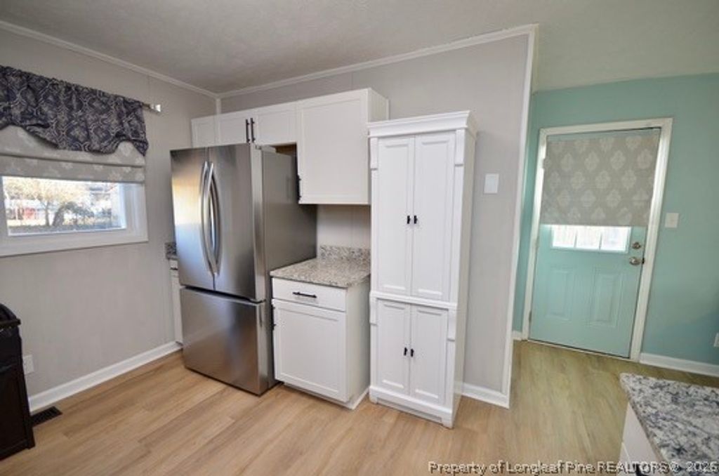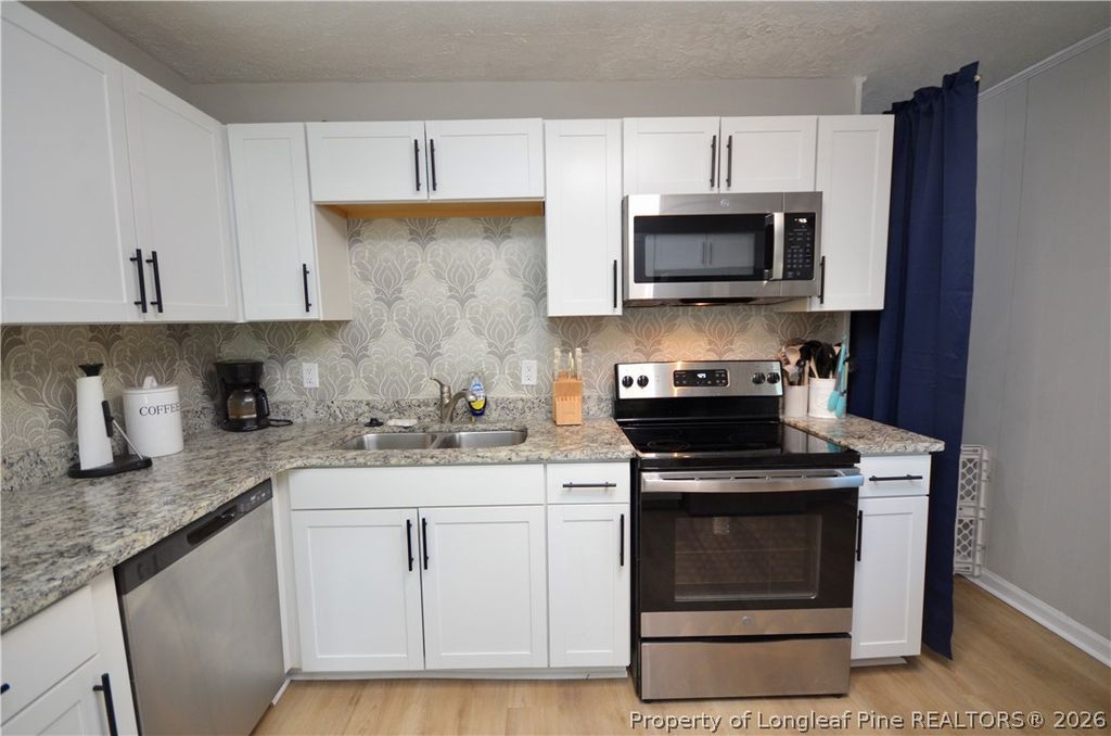 Charming home with a large fenced backyard just minutes away from grocery stores, restaurants & Hope Mills Rec Center. Home has been updated throughout. Lovely 3 bedroom home with upgraded-low maintenance LVP flooring through the whole house - NO CARPET. Cozy living room is just off the kitchen with white shaker cabinets, granite counters, range, dishwasher and microwave. The laundry room is just off the kitchen. Updated full bath with a beadboard wall accent, shower/tub combo and solid surface vanity countertop with a mirrored medicine cabinet for more storage space. No wasted space! 3 Bedrooms with plenty of storage space. Large fenced backyard has a lot of potential. Low maintenance brick & vinyl siding exterior. Home has gutters with gutter guards. There is a storage room just off the side of the home. Vinyl window throughout the home. Roof, HVAC & Hot water heater new as of 2023. Nothing more to do in this house besides to move in and make it your own!!