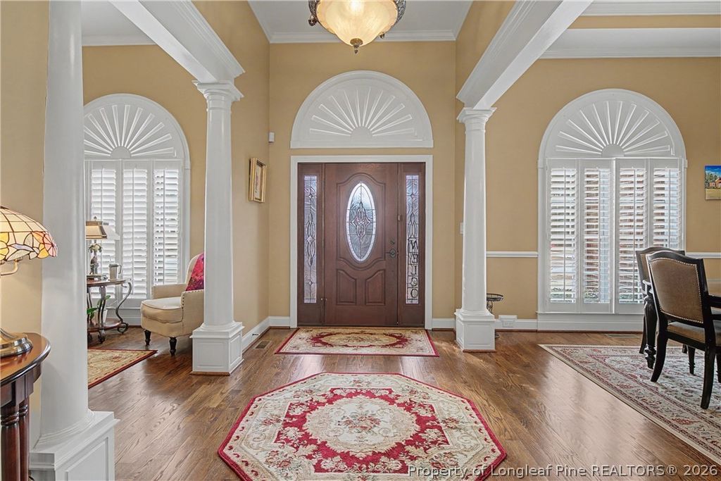 Gorgeous all-brick executive home located in the prestigious gated golf community of Anderson Creek Club! Overlooking the 8th green, this stunning property offers a peaceful tree-lined backdrop and a covered patio complete with a built-in gas grill and TV"”a gift from the seller! Inside, you'll find an inviting split floor plan with 3 bedrooms and 2 baths on the main level, plus a large guest suite with full bath upstairs. Beautiful trim work, high ceilings, columns, and plantation shutters give this home a true custom feel. Enjoy a grand family room with custom bookshelves and large windows showcasing golf course views, a formal dining room, and a private study. The chef's kitchen features an oversized island, breakfast bar, and massive walk-in pantry. Perfect for entertaining with a butler's pantry. Retreat to the luxurious primary suite with stunning trim detail, a spa-like bath featuring a tiled double shower, separate garden tub, custom cabinetry, and dual walk-in closets. Two large guest rooms share a spacious Jack & Jill bath with separate vanities. Additional highlights include a three-car garage, spray foam insulation, encapsulated crawlspace, tankless water heater, and excellent energy efficiency with an average electric bill around $177/month. Elegant, efficient, and move-in ready"”this is luxury living at its finest! POA Dues include high speed internet, recycling services, 24/7 security and access to all of the amenities and activities that ACC has to offer.