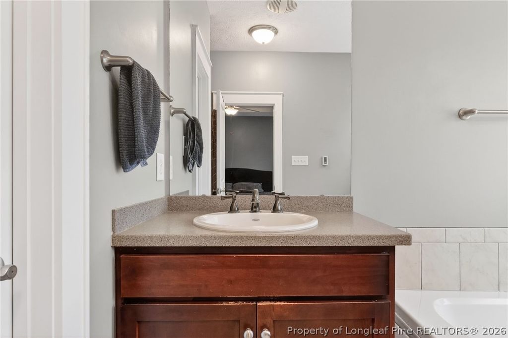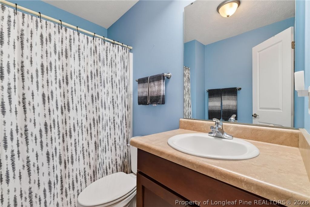 Welcome to 124 Riviera Ln, a well-maintained home tucked away on a quiet cul-de-sac in the Carolina Lakes community of Sanford, NC, just a short distance from the lake. This 3-bedroom, 2.5-bath home offers a functional layout designed for comfort and everyday living. A covered front porch welcomes you into the home. The front living area features tall ceilings and a fireplace, creating a warm yet open atmosphere. The adjoining dining room is filled with natural light, offering an inviting space for meals and entertaining. The main-level primary bedroom provides privacy and convenience, featuring a walk-in closet and an en-suite bathroom with dual vanities, a garden tub, and a walk-in shower. Upstairs, two additional bedrooms share a full bathroom, along with a large bonus room that offers flexible space for a media room, home office, playroom, or additional living area. Out back, the home continues to impress with a spacious yard, a deck ideal for grilling, and a dedicated fire pit area "” perfect for relaxing or gathering with friends. Recent updates include a roof replaced in 2019 and one HVAC system replaced in 2022. Located in the Carolina Lakes community, this home offers a peaceful setting with access to neighborhood amenities and convenient proximity to surrounding areas.
