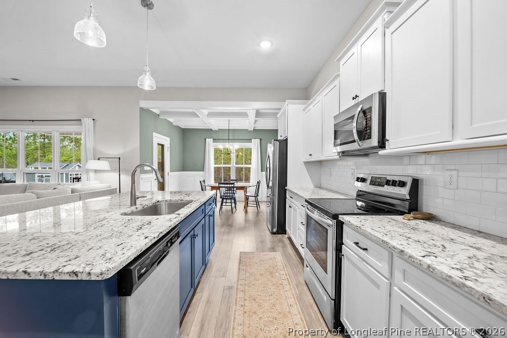 | INTERIOR | Breakfast Bar, CEILING FAN(S), Coffered Ceiling(s), Crown Molding, Eat-in Kitchen, Granite Counters, KITCHEN ISLAND, Pantry, Recessed Lighting |