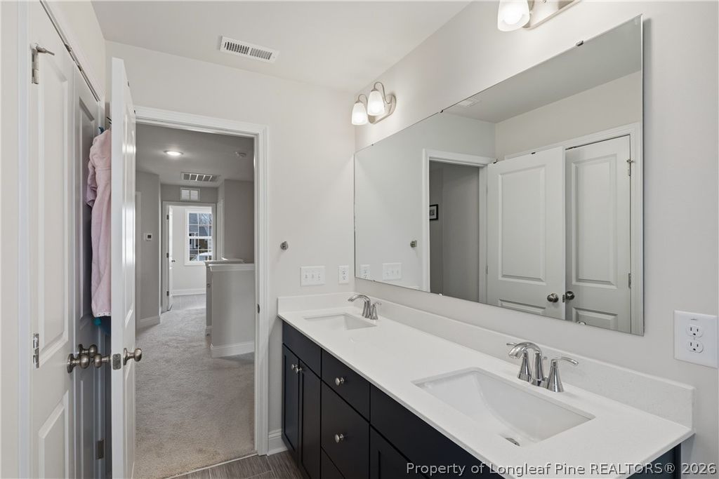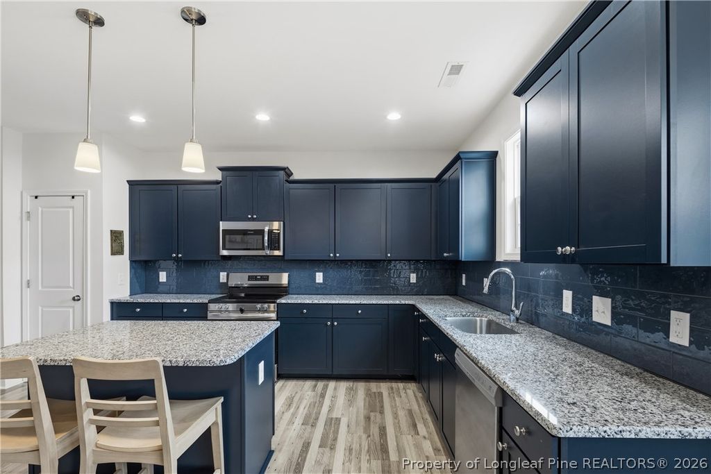 Gorgeous move-in-ready home with thoughtful design and lots of natural light throughout. Popular floor plan and like new. Open concept with modern features throughout . The Chef-Inspired Kitchen is the true heart of the home and features stunning granite, bar seating, bold blue cabinetry with matching backsplash, and stainless steel appliances including a refrigerator with french doors. Large master suite with dual vanities, separate shower and tub and adjacent laundry room. Privacy fencing and covered patio create a nice backyard setting. Located close to Ft. Bragg, I295 and Lake Rim Park. Better than new home in a great neighborhood.
