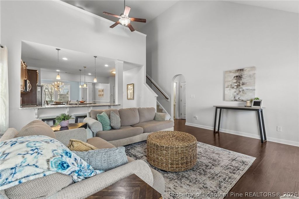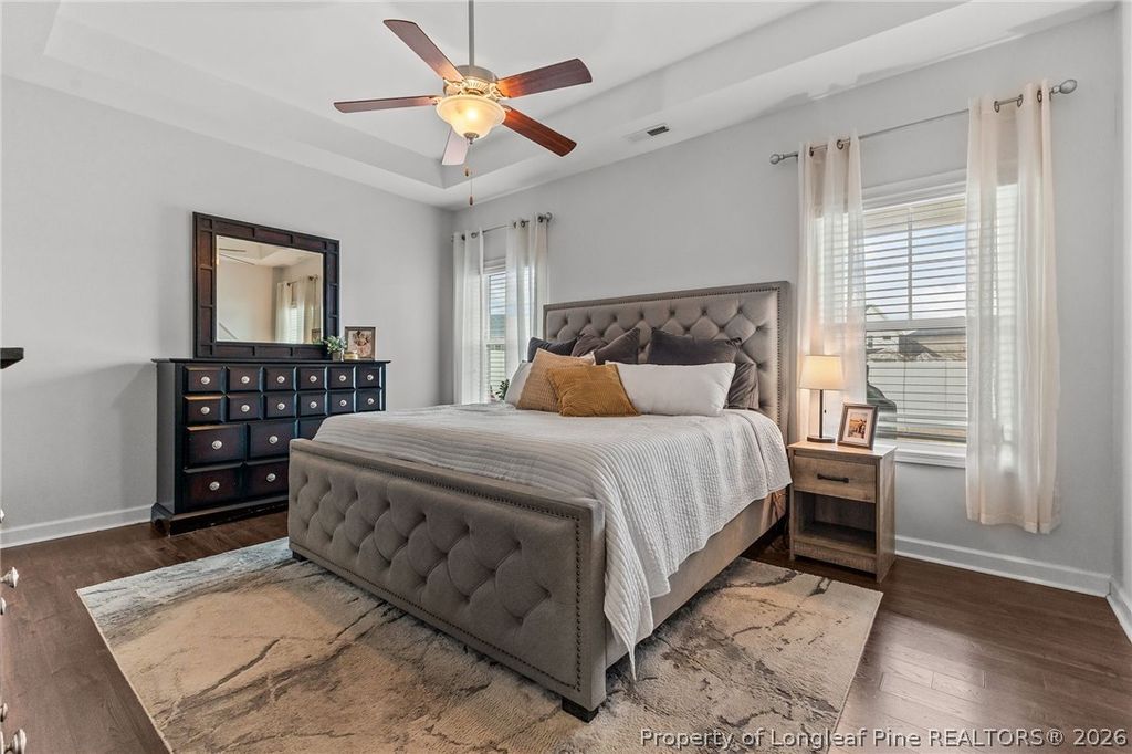 Welcome to Highcroft - where comfort, style, and thoughtful design come together in this beautifully maintained 4-bedroom, 2.5-bath home. A charming covered front porch invites you inside to a welcoming foyer that opens to an elegant formal dining room featuring tray ceilings. The spacious living room showcases cathedral ceilings and a cozy fireplace, creating a bright yet inviting gathering space. The luxury central kitchen is truly the heart of the home, complete with: Granite countertops, Double ovens,Breakfast bar Island bench, Abundant cabinetry and prep space. The main-level primary suite with coffered ceilings provides convenience and privacy, featuring a luxurious ensuite bath with a separate walk-in shower, double vanities and relaxing soaking tub. Upstairs, you'll find three additional oversized bedrooms, 2 with walk in robes, a full bath, a versatile loft that can be used as family room, and an open-to-below area that enhances the home's airy, light-filled feel. Step outside to enjoy the covered back porch overlooking a fully fenced backyard"”perfect for relaxing or entertaining. Additional highlights include: Lots of storage, Completely fresh interior paint, some fixtures updated and a new architectural roof (2025) with transferable warranty. Close to 295 and shopping and with easy access to Fort Bragg due to the opening of the new 295 outer loop. This Highcroft gem blends elegance, function, and peace of mind"”ready for you to call home.