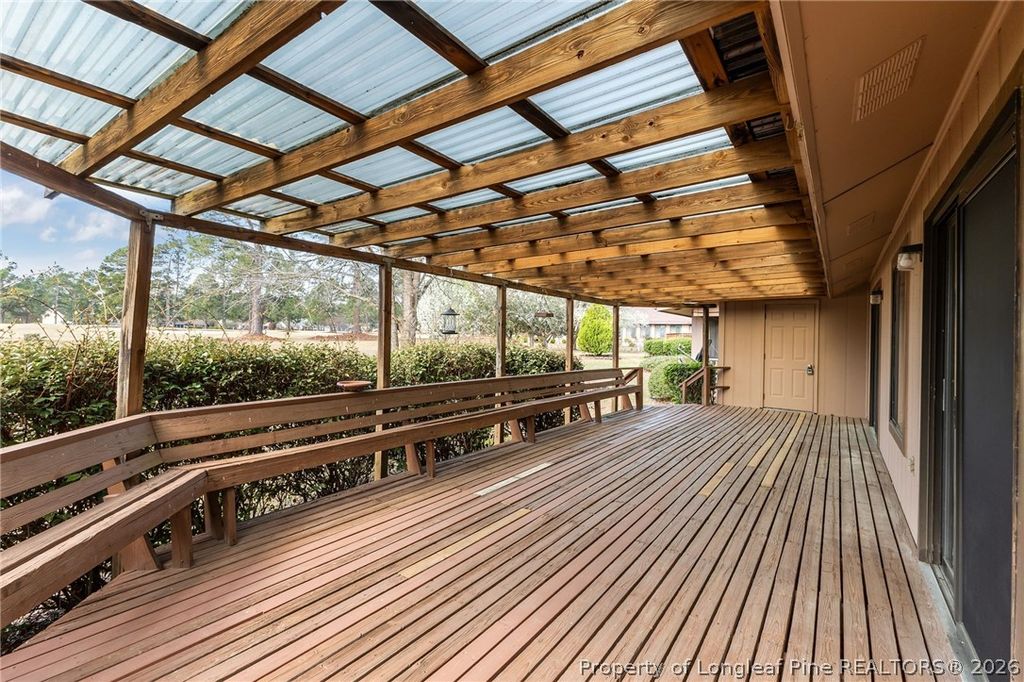 Welcome to the beautiful, guarded Gates Four subdivision. This property features 2 bedrooms, 2 bathrooms and an office that can be converted to a 3rd bedroom in the Jack Britt school district with an assumable VA loan rate of 2.625%. The inviting covered front porch welcomes you into the spacious living room with gas fireplace, vaulted ceilings, dining nook and access to the huge covered back deck that overlooks the golf course and has a storage room. The kitchen boasts granite countertops, SS appliances and 2 pantries. The primary is located opposite of the 2nd bedroom and bathroom and has a dual vanity, WIC and tiled shower. HOA amenities include a community pool/clubhouse (walking distance) tennis and more. HOA is also responsible for the roof. Sellers are providing a $500 home warranty of buyer's choice. Don't let this property pass you by. Schedule your showing today!
