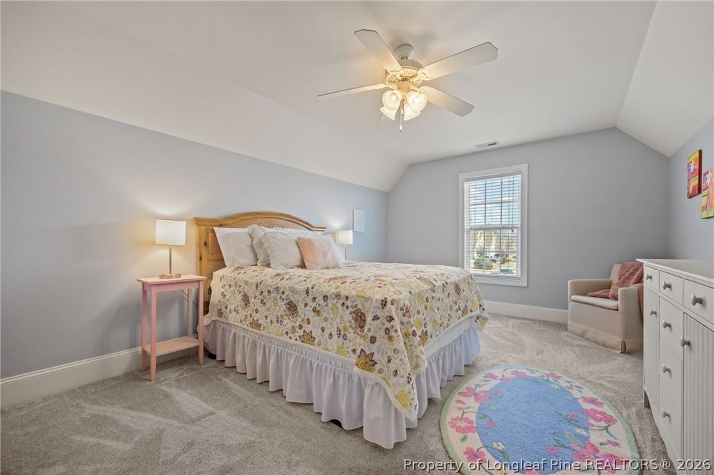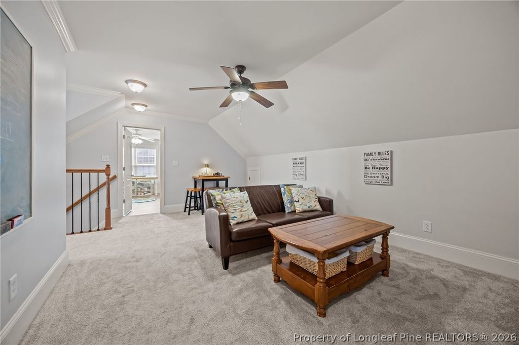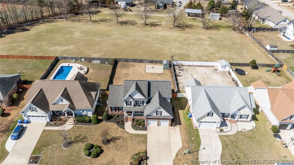 Welcome home to Surrey Meadows, located in the highly sought-after Jack Britt school district! This beautiful 6-bedroom, 3.5-bath home offers space, style, and thoughtful details throughout"”perfect for comfortable everyday living and entertaining. Step inside and you'll immediately notice the extensive crown molding and trim work that add timeless elegance to the home. The spacious living room features a stunning see-through gas fireplace and double French doors that lead into a bright and inviting sunroom, creating the perfect place to relax or gather with friends. The gourmet kitchen is sure to impress with a cooktop stove, wall oven, large island, granite countertops, and abundant cabinet space"”ideal for anyone who loves to cook or entertain. The oversized breakfast area easily accommodates a farm-style table, while a formal dining room provides the perfect setting for special occasions. Enjoy outdoor living on the screened-in porch overlooking the large, privacy-fenced backyard, complete with a small basketball court and storage shed"”plenty of space for recreation and relaxation. The first-floor primary suite offers comfort and convenience with dual walk-in closets, dual vanities, a beautiful tiled shower, and a soaking tub for a true retreat feel. Upstairs, you'll find a spacious loft along with five additional bedrooms, providing room for everyone. The third-floor unfinished space offers excellent storage or the opportunity to expand your living area in the future. Additional features include a large 2-car garage and an irrigation system to help maintain the well-manicured yard and a tankless water heater for unlimited hot water. Conveniently located near shopping, restaurants, parks, and schools, with an easy commute to Fort Bragg, this home truly offers the perfect blend of space, comfort, and location.