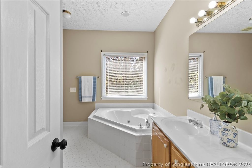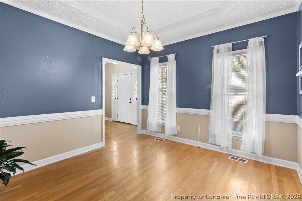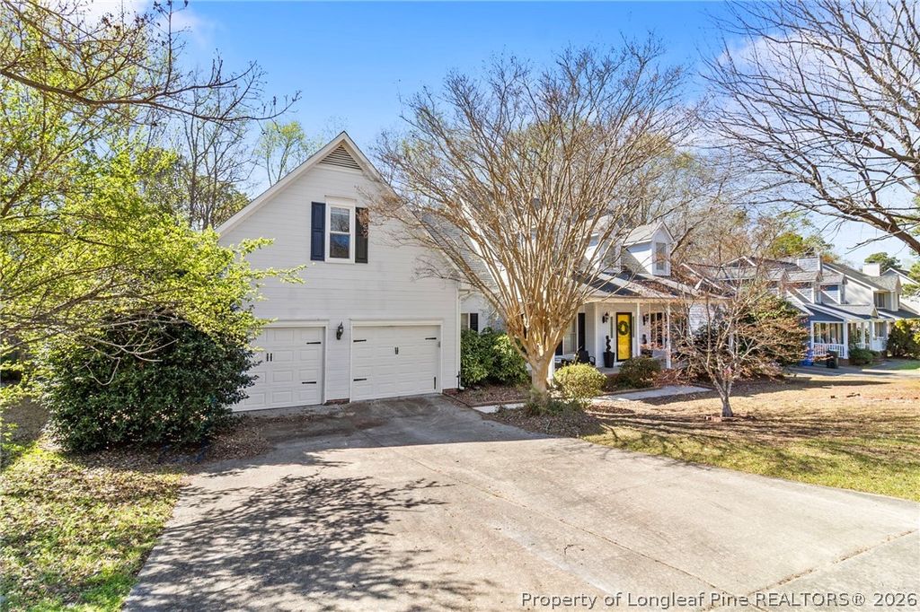A front porch made for morning coffee, a back deck big enough for evening conversations with the neighbors AND their friends, and over 2,400 square feet of space to truly live in "” this charming Kings Grant home blends gorgeous curb appeal with everyday comfort...WITHOUT the HOA fees! ~~ Inside, more than 2,400 square feet provides room to spread out and live comfortably. Hardwood floors, a spacious living room, formal dining/flex space, and a sunny kitchen nook create inviting gathering spaces, while the downstairs primary suite offers a relaxing retreat with trey ceiling, soaking tub, and separate shower. Upstairs, a large bonus room with two closets opens the door for endless possibilities: media room, playroom, guest space, home gym, or home office. A mudroom with washer and dryer sits conveniently between the kitchen and two-car garage, and a walk-in attic makes storage refreshingly simple. Step outside to enjoy the privacy-fenced backyard with mature trees and landscaping creating a peaceful backdrop. Classic dormers and a full-length front porch give the home standout curb appeal. Location adds even more value: walking distance to Methodist University, minutes from nature and fitness at the Cape Fear River Trail, shopping, dining, and gym time along Ramsey Street, and quick access to I-295 for easy travel throughout Fayetteville, Raeford, and Hope Mills. With major updates including HVAC (2021) and water heater (2024), generous square footage, and pricing below competing homes, this property offers space, character, and convenience all in one.